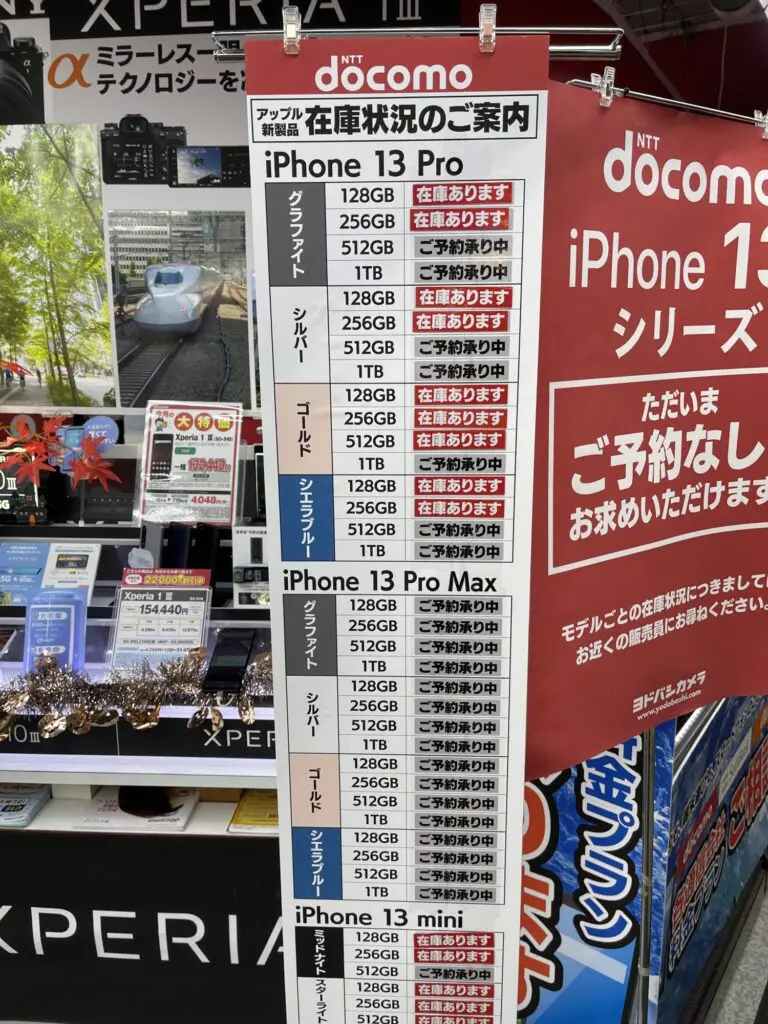 iPhone 13 Pro MAXは全てが予約受付中に。13 mini は局所的に在庫ありな感じです。今回は例年と違い、ドコモショップやAUショップにもちょこちょこ在庫が入っているようで、発売日当日に少し離れた駅の店舗にも在庫があったので何件か探し回ればPro MAXも見つけられるかもしれません。