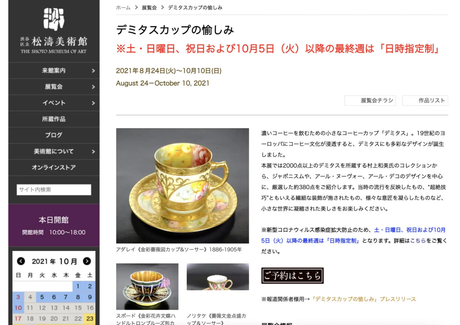 開き直って、本日は渋谷の高級住宅街といわれる松濤にある美術館に行ってきました!目的は流行りのデミタスカップ展です。一応、カップ&ソーサーマニアを自称しているので開始前から見に行きたいなと思っていました。
