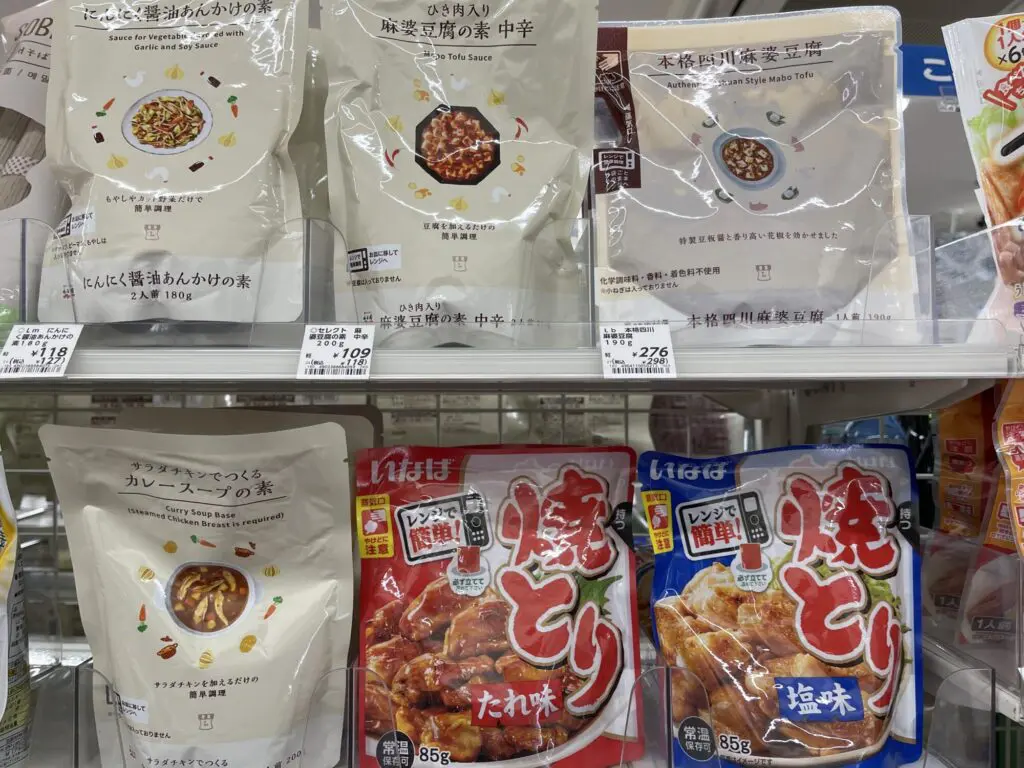 例えば以下のパッケージは2021年5月時点での店頭の写真ですが、炊きたてのお米が家にある人が、お腹が減って入店した場合どれを選ぶでしょうか。私なら「焼きとり」のタレと塩で悩んでしまいます。