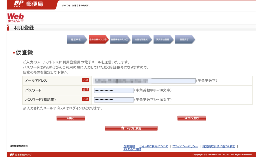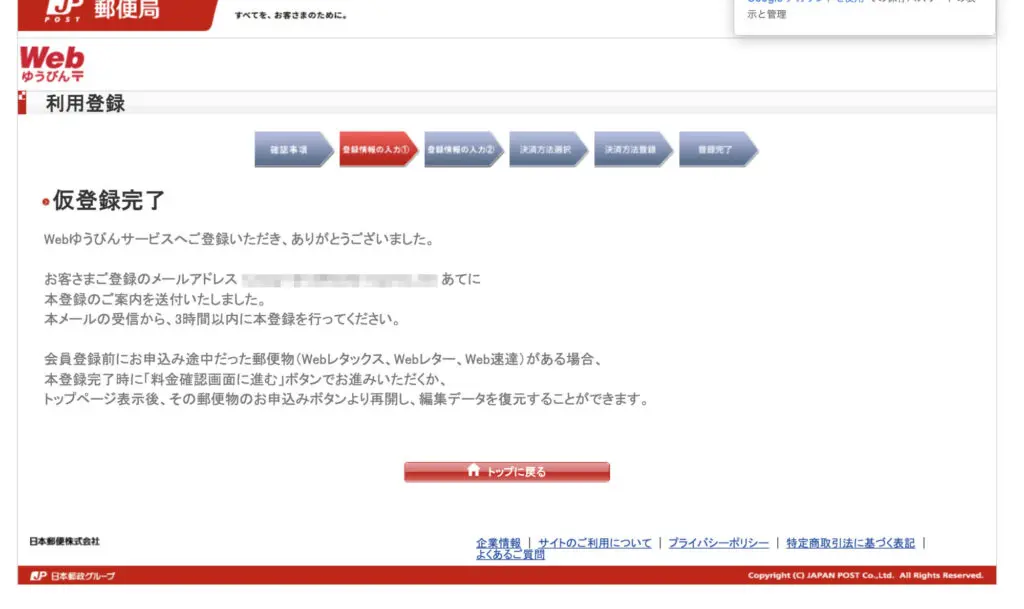 このように仮登録が完了します。