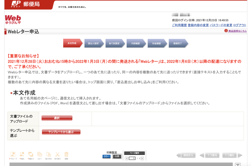 博識かつ業務効率化に努めている大人になれる本の読者方は、とうの昔からご存知だと思うのですが、郵便局の「WEBレター」というサービスを利用すると、PDFをアップロードして、そのまま先方に郵便物を送ることができます。