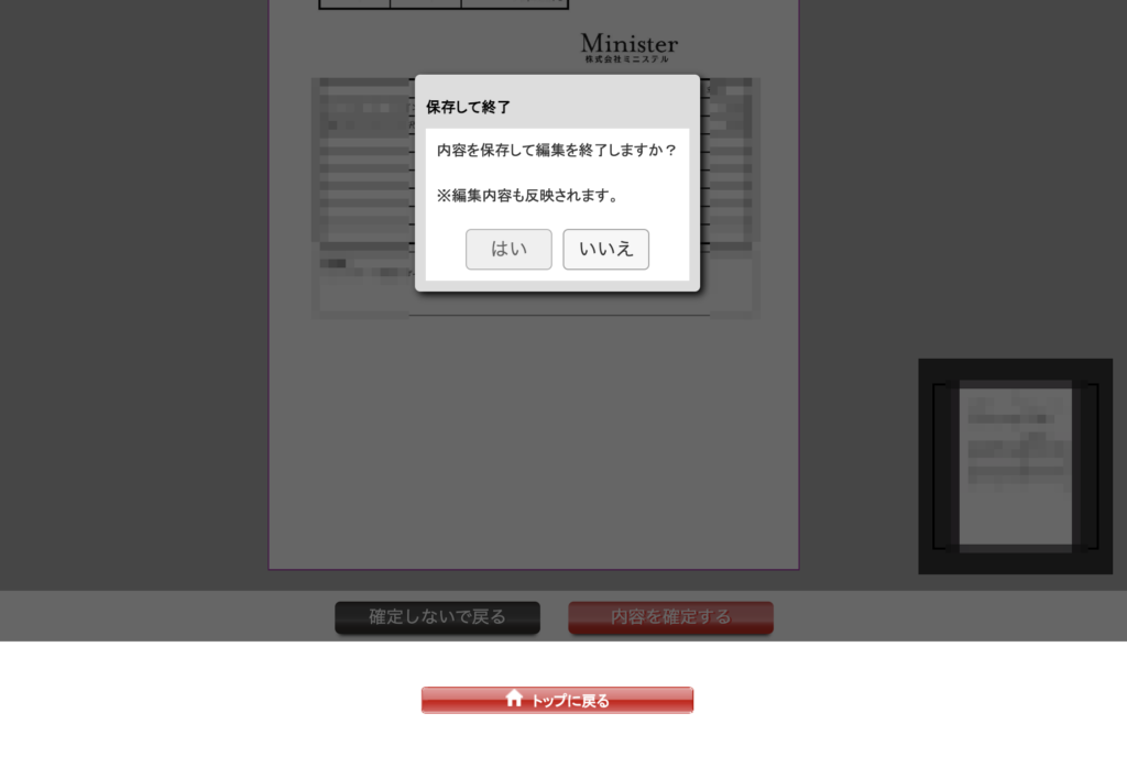 これ少しややこしいのですが、「終了→閉じる」ではなく、「保存して印刷に進む」という意味です。