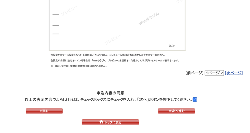 「仕上がりイメージを確認してください」とでてくるので、全ページをチェックします。