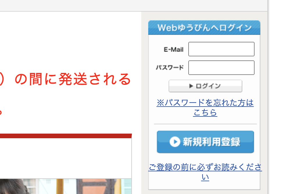 案内画面の右に「Webゆうびんにログイン」とあるので、IDを持っている人はログインします。