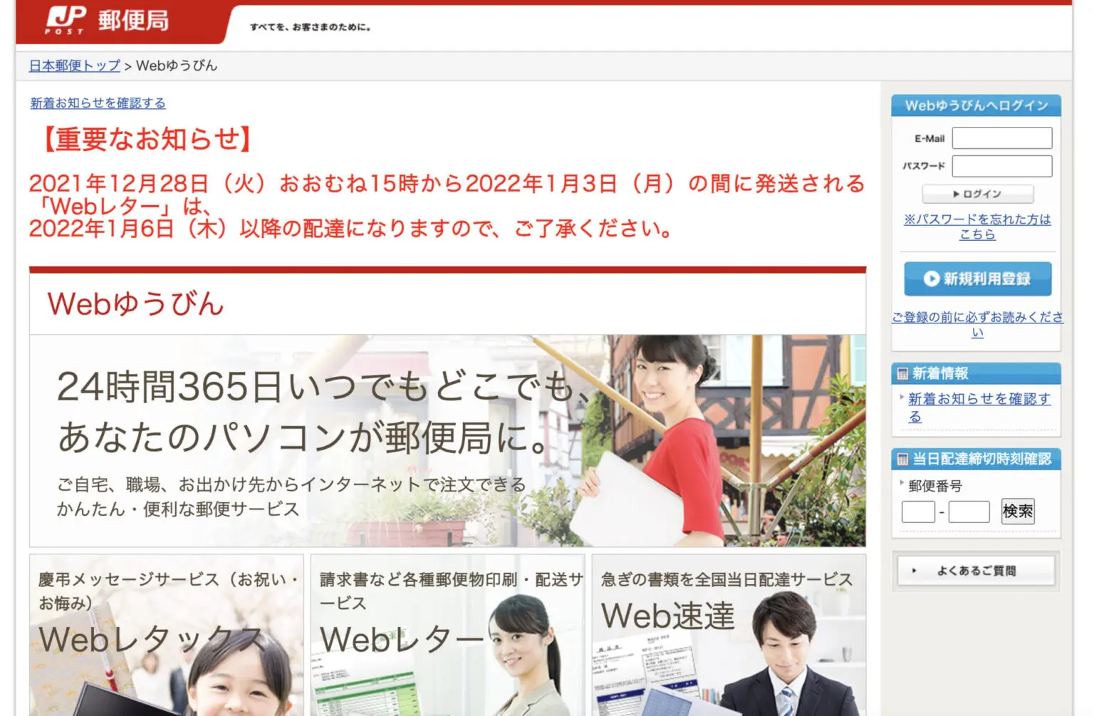 博識かつ業務効率化に努めている大人になれる本の読者方は、とうの昔からご存知だと思うのですが、郵便局の「WEBレター」というサービスを利用すると、PDFをアップロードして、そのまま先方に郵便物を送ることができます。