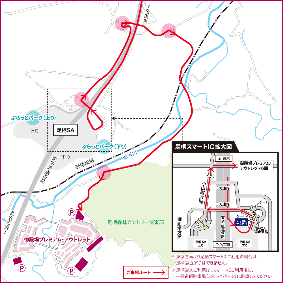 御殿場ICから向かう方法しかなかったのですが、改装されて足柄スマートICと連結されるようになりました。