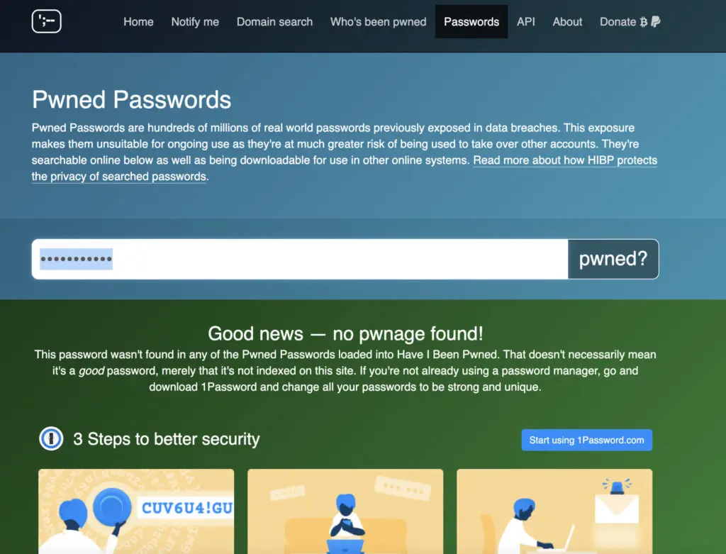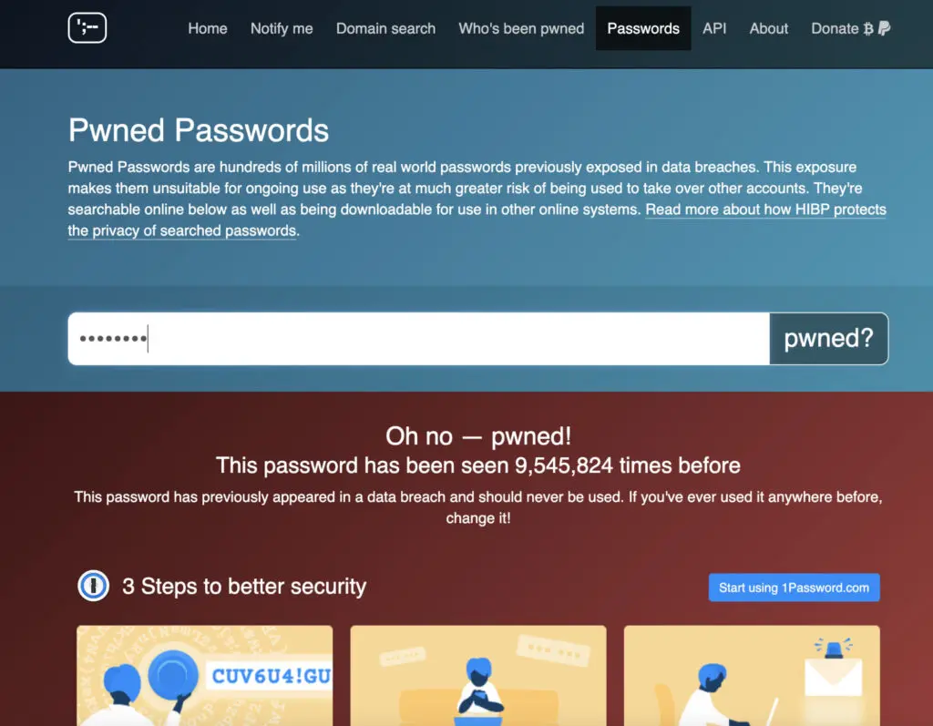 私が日常的に浸かっているパスワードは、253件流出しているので同じパスワードを思いついて使っている人が500~1,000人以上いると思うと面白いですね。