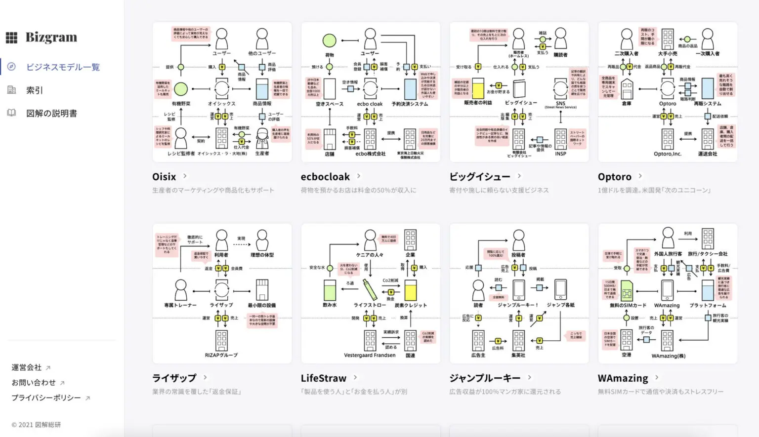 一般社団法人 図解総研の運営しているサイト「ビズグラム」というサイトをご存知でしょうか。 今から新しいビジネスを構築しようとしている人も、どのようなビジネスを進めていけばいいか、なかなか良いアイディアが出てこない時がありますよね。