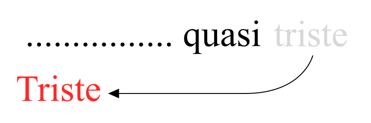 また« quasi tristes »という表現は、行の変わり目で分断されています。これは「句またぎenjambement」と呼ばれる技法です。