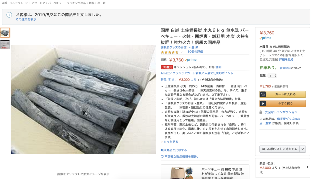 生産者に失礼なのですが、高すぎるけど便利なものと言えばこの「白炭土佐備長炭 」です。