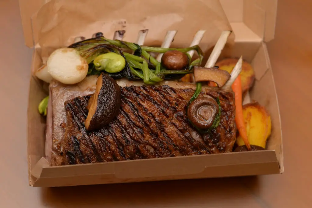 ホカホカの肉は急いで持って帰りオーブンで再加熱、そのまま頂くという流れが重要です。夜18時に予約したなら、ぴったりに受け取って、18時30分~19時には食べ始めたいところです。
