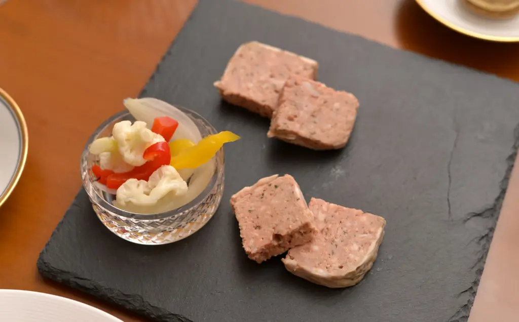 ピクルスは小さなクリスタルの器に盛り付けました。本当は花崗岩の右側にブルゴーニュのディジョンマスタードを添えようと思いましたが冷蔵庫で迷子になったので諦めました……。フォションにも売っているので一つあると便利です。