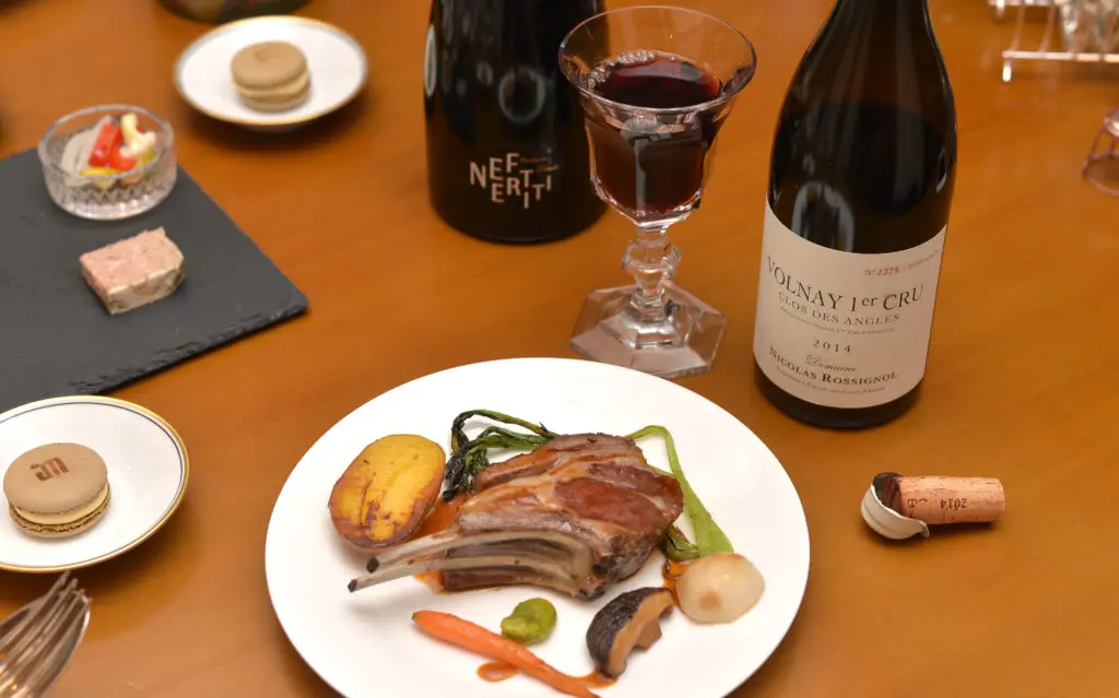 ワインはヴォルネイのプルミエ・クリュ。Nicolas Rossignol Volnay 1er Cru Clos des Angles を選んでみました。