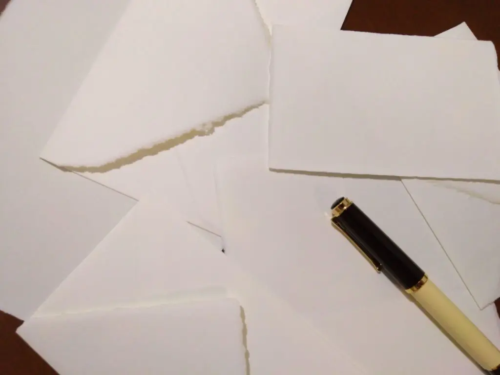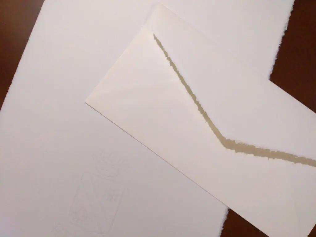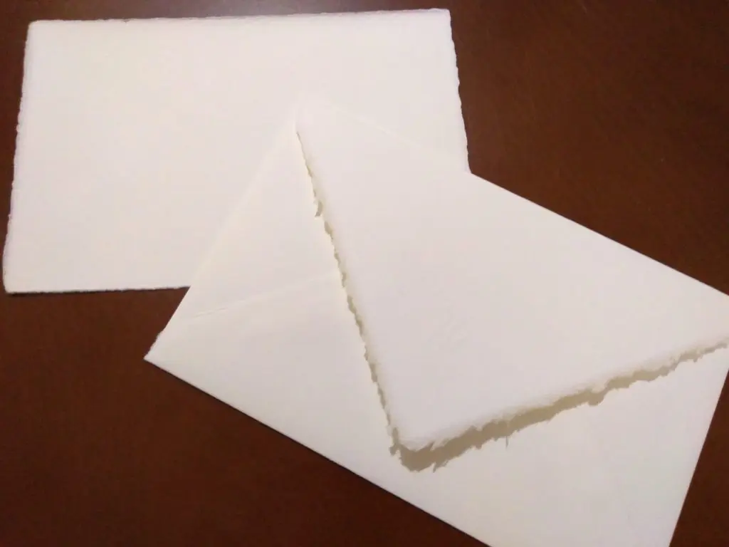 筆者の場合、A4サイズの便箋とDL封筒(A4三つ折りサイズ)の組み合わせを好んで使用しています。大きな紙に、大きめの文字を太めの万年筆でぬらぬらと書くのは、なかなか心地よいものです。ましてやその紙が極上の手漉き紙となれば、もはや至福といっても過言ではありません。