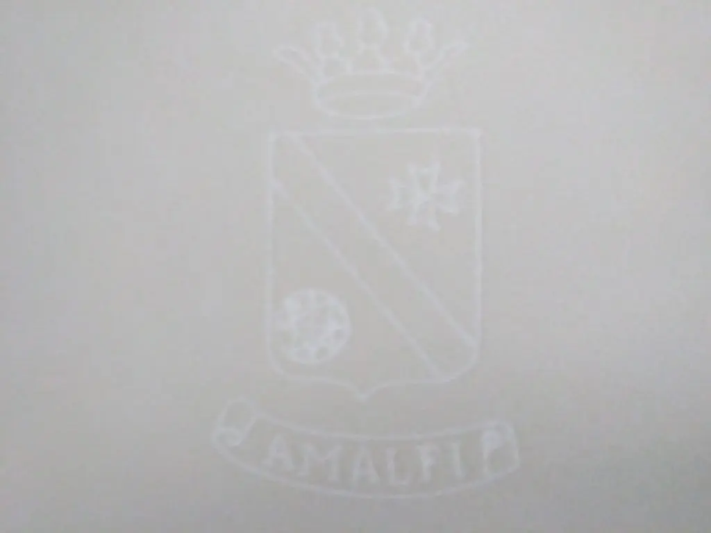 盾形紋地(英:escutcheon / 仏:écusson)の右上に描かれているマルタ十字は、マルタ騎士団の象徴として知られていますが、元々はアマルフィ公国のシンボルです。左下の八芒星は、おそらくコンパスでしょう。誇らしげに掲げられた王冠が、公国時代のアマルフィの栄華を偲ばせます。