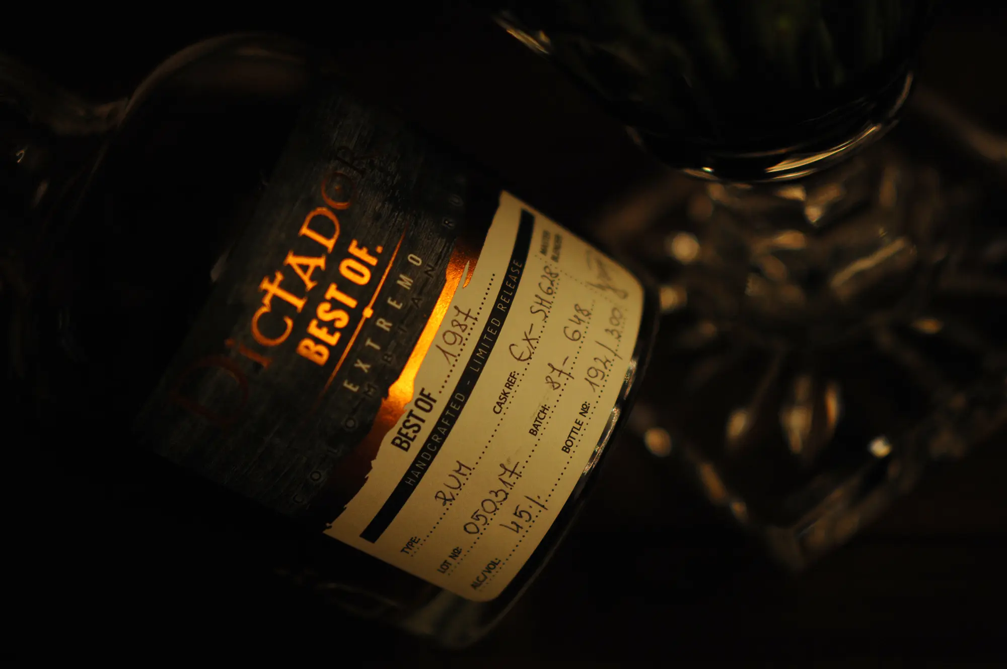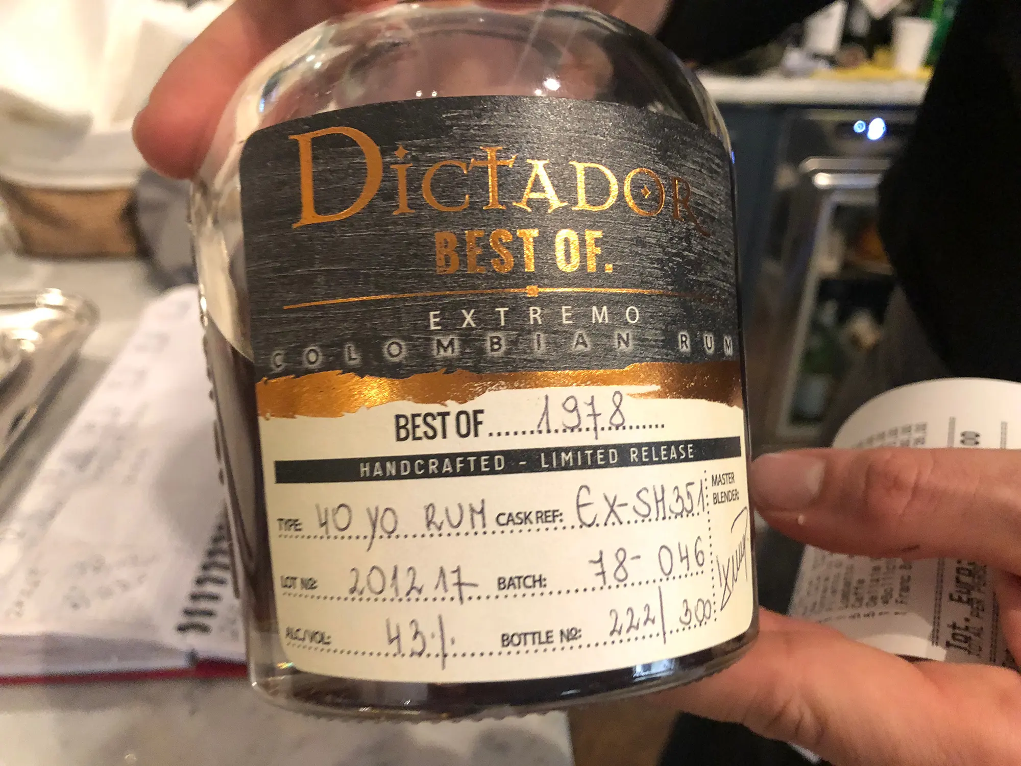私が買ったのはビンテージが9年若いDICTADOR BEST OF 1987 – EXTREMO COLOMBIA RUMというボトルです。このBEST OF.シリーズは様々な製造年からマスターブレンダーが選び抜き、ブレンドして出荷するものでカスク・リファレンス・ナンバーやバッチ、ロットナンバーなど詳細がひとつずつ手書きで残されています。