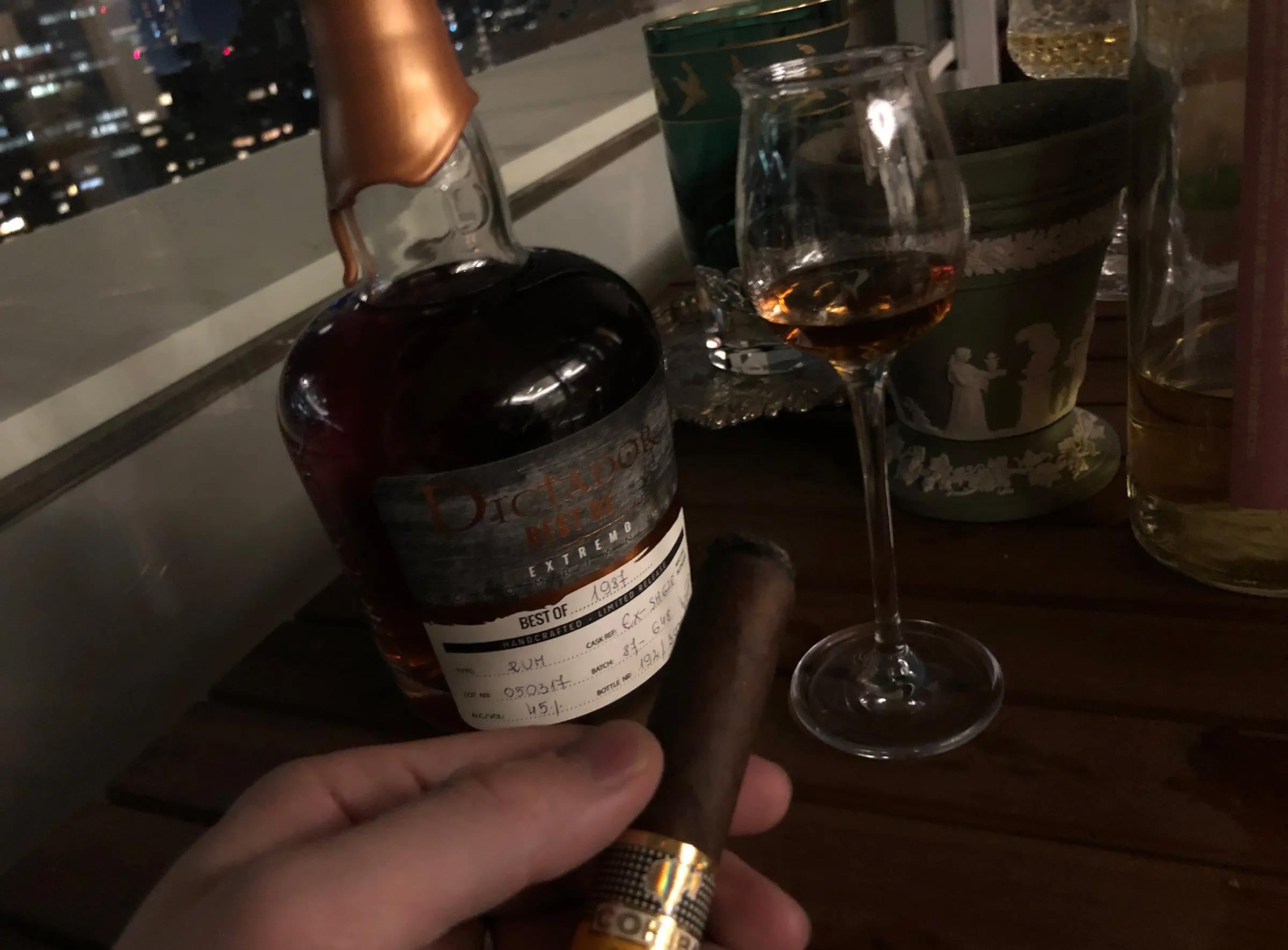 肉とブルネッロの赤ワインを楽しみ、デザートの後に「食後酒は何がいい?」と聞いたところ、この写真のディクタドールを勧めてくれたのです。厳密にはDICTADOR BEST OF 1978 – EXTREMO COLOMBIA RUMという名前です。