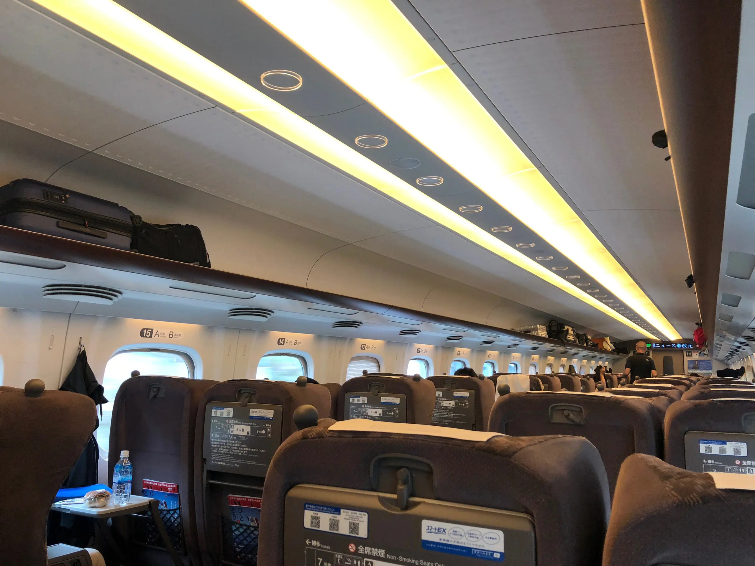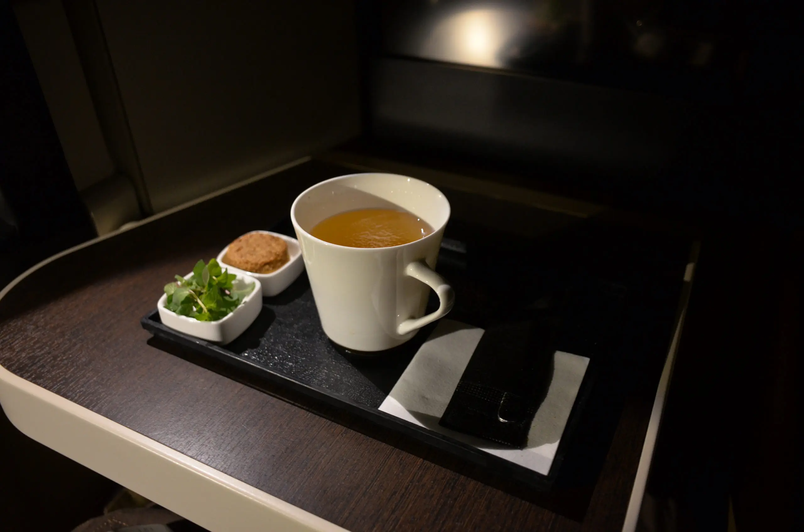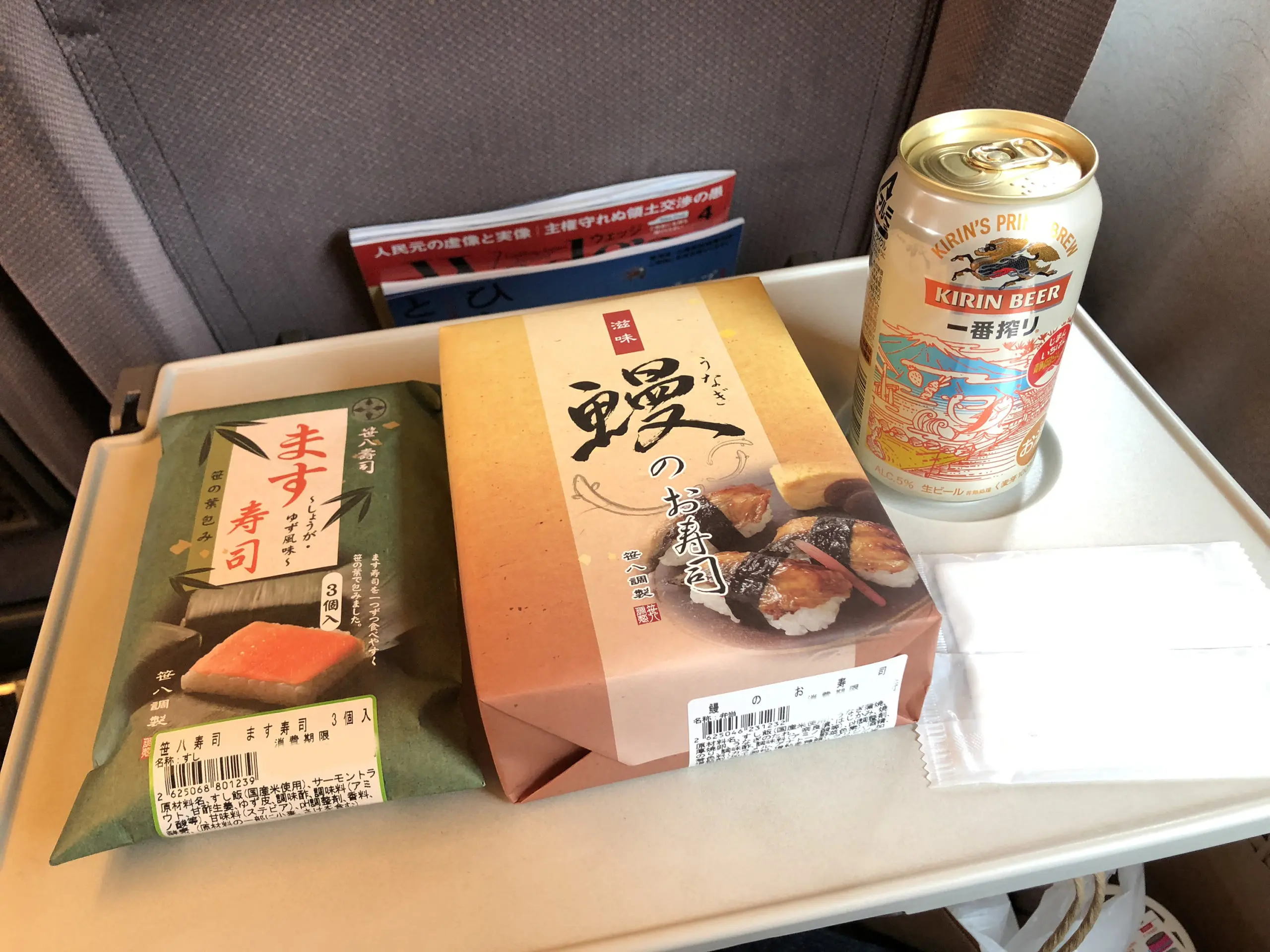コーヒーやお茶についても悩む事が多いのですが、水筒などの荷物を少なくしたいということと、乗車時間が1時間程度なので諦めています。