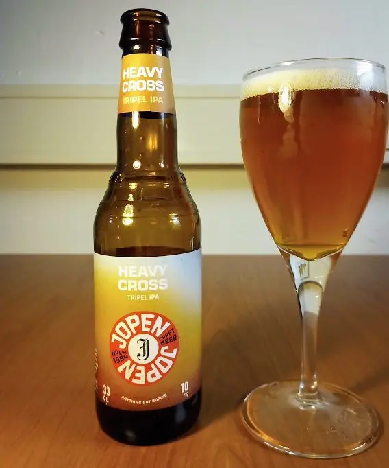 次に行きましょう。Heavy Cross Triple IPA。名前からして恐ろし気。トリペルはベルギービールによくある強いペールエールを指す名称。強い、というのは味の濃さもそうですが、端的にアルコール度数が高い。10%。IPAということでホップがこれでもかと足され、アルコールもホップの割合も高い、ハードな仕上がりのビールです。Heavy CrossというのはGossipというバンドの同名のヒット曲に由来しているという。ヨーペンはこういう名付け方が好きですね。歌のメッセージは重い十字架を背負って、過酷なこの世に面している、といった風に要約できるようです。西洋文化はしかしいつまで経ってもキリスト教ネタを捨てませんね。