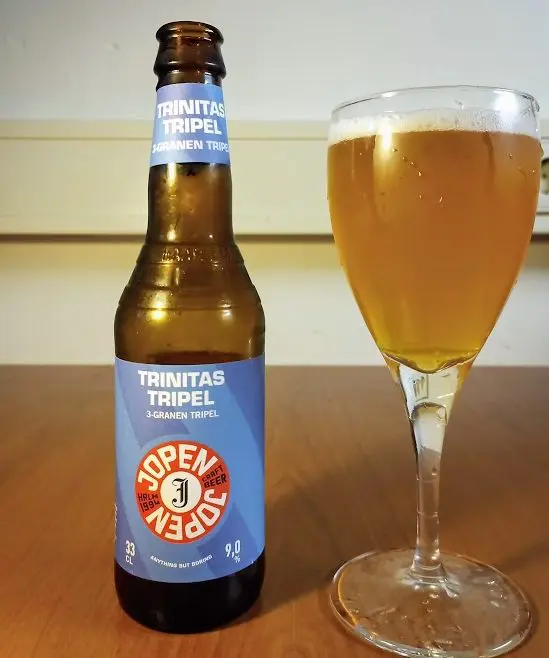 四本目はTrinitas Tripel。三位一体のトリペル。ペールエールの一種、非常に薄い黄金色が美しいブロンドの一本となります。ドイツでは純粋令の水、麦芽、ホップが「三位一体」とされていますが、ヨーペンは大麦、小麦、オーツを自分たちの「三位一体」として打ち出し、この名前にしたとか。麦芽の種類だけで「三位一体」を作るのは、ドイツのものと釣り合いが取れない気もしますが、そんなことを言うのも野暮なのだろう。