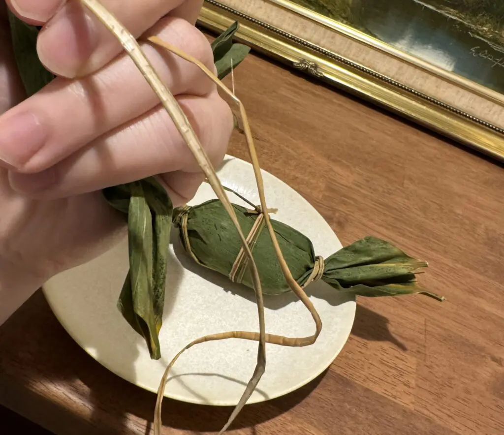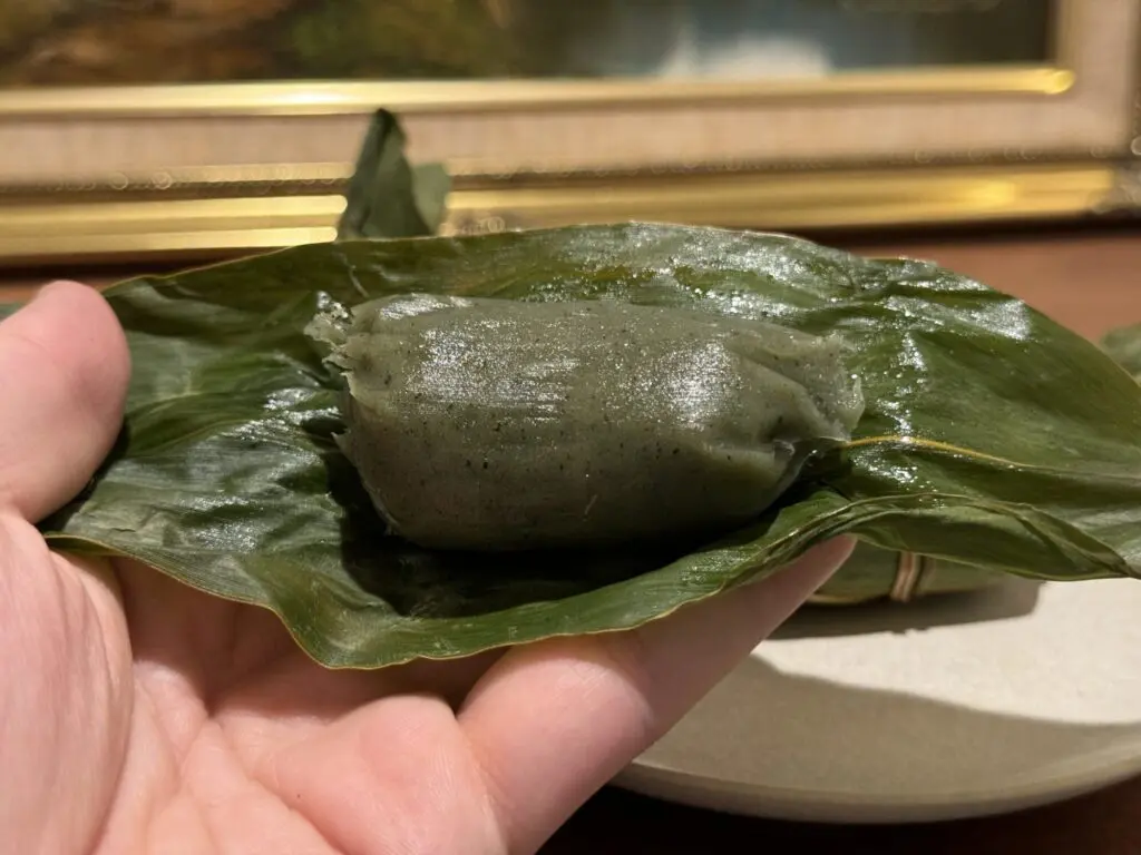 笹の紐が上手に左右と中央で巻かれていますが、全部一本に繋がっていて、 これを巻くのだけでも結構大変そうだなという印象を受けました。お土産にしたら喜ばれると思うので、 年配の方への差し入れなんかには最適だと思います。