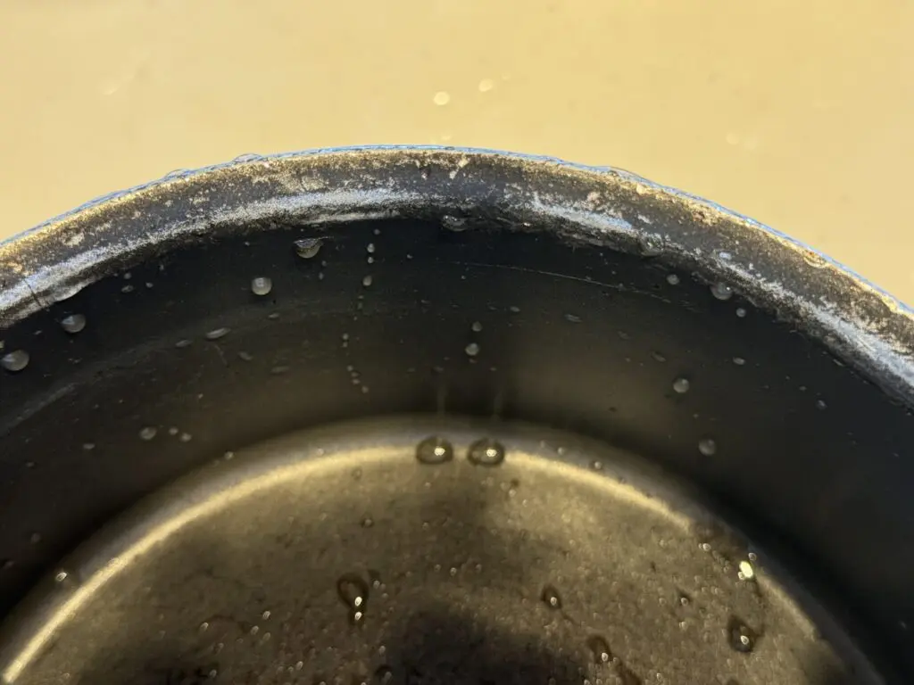 2つ同じサイズがあるのですが、片方、この写真のように、 まんべんなくめくれてきてしまっています。おそらく木べらか何かで撹拌した後だと思うのですが、 さすがに5年以上利用するのは難しいと思います。