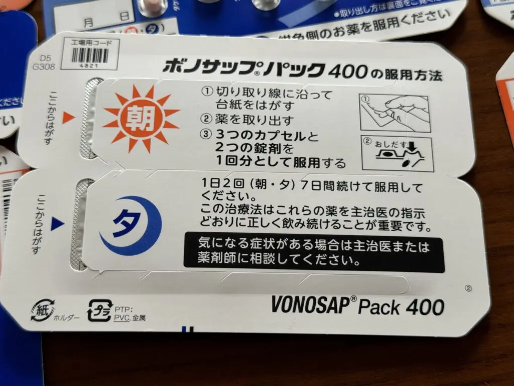 これらの薬剤を1セットとして、1日2回、7日間続けて服用します。