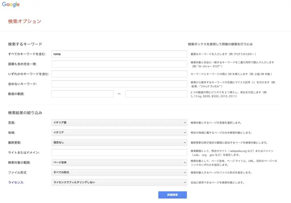 例えばイギリスの製品であれば英語、イタリアの製品であればイタリア語など、調べたい現地の言語で検索します。