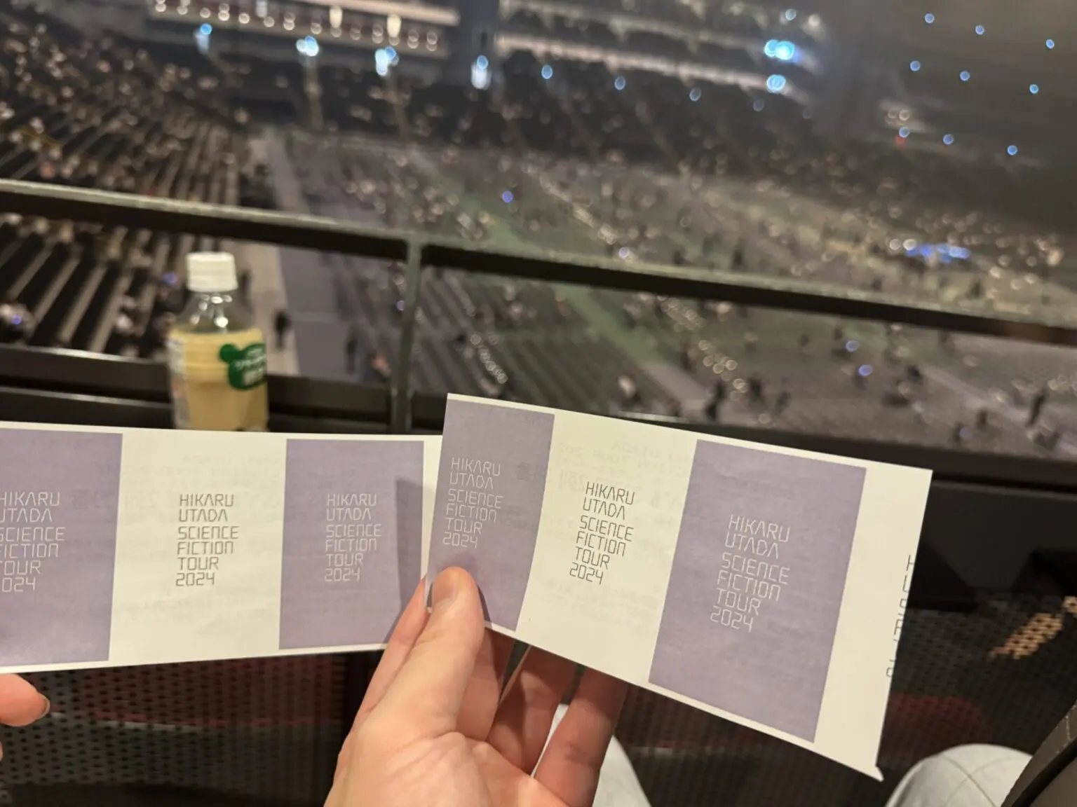 最も幸運な人は前の列で楽しむことができましたが、 この横の席もなかなか良くて、椅子がまず長時間座っても腰が全く痛くならないのと、 小さな簡易テーブルがあるので飲み物やスマホなど置くことができます。入るまで知らなかったのですが、 簡易的な食べ物や飲み物が販売されていて、自由に飲食ができます。