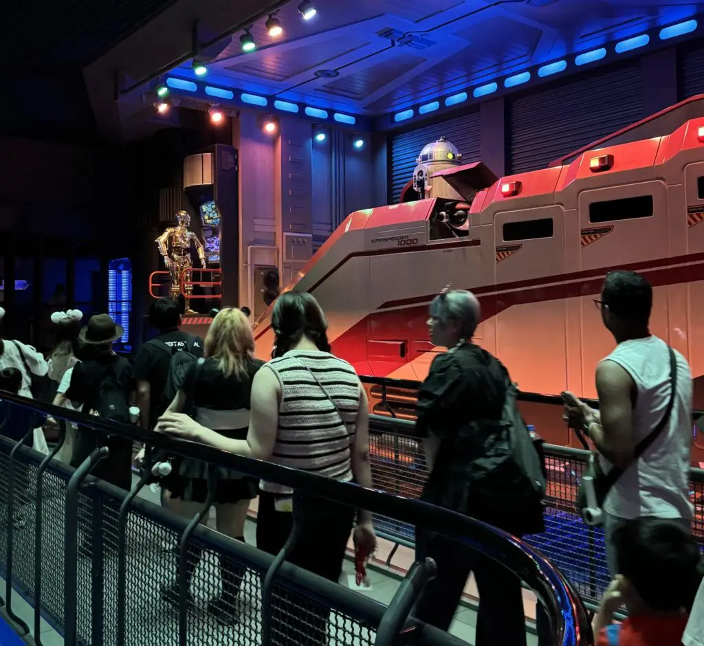 例えば、スターツアーズは入園直後はゲートから近いということもあり、少々混雑するのですが、夕方頃になると10分待ち以下になることが多く、大変スムーズに入れることが多いです。