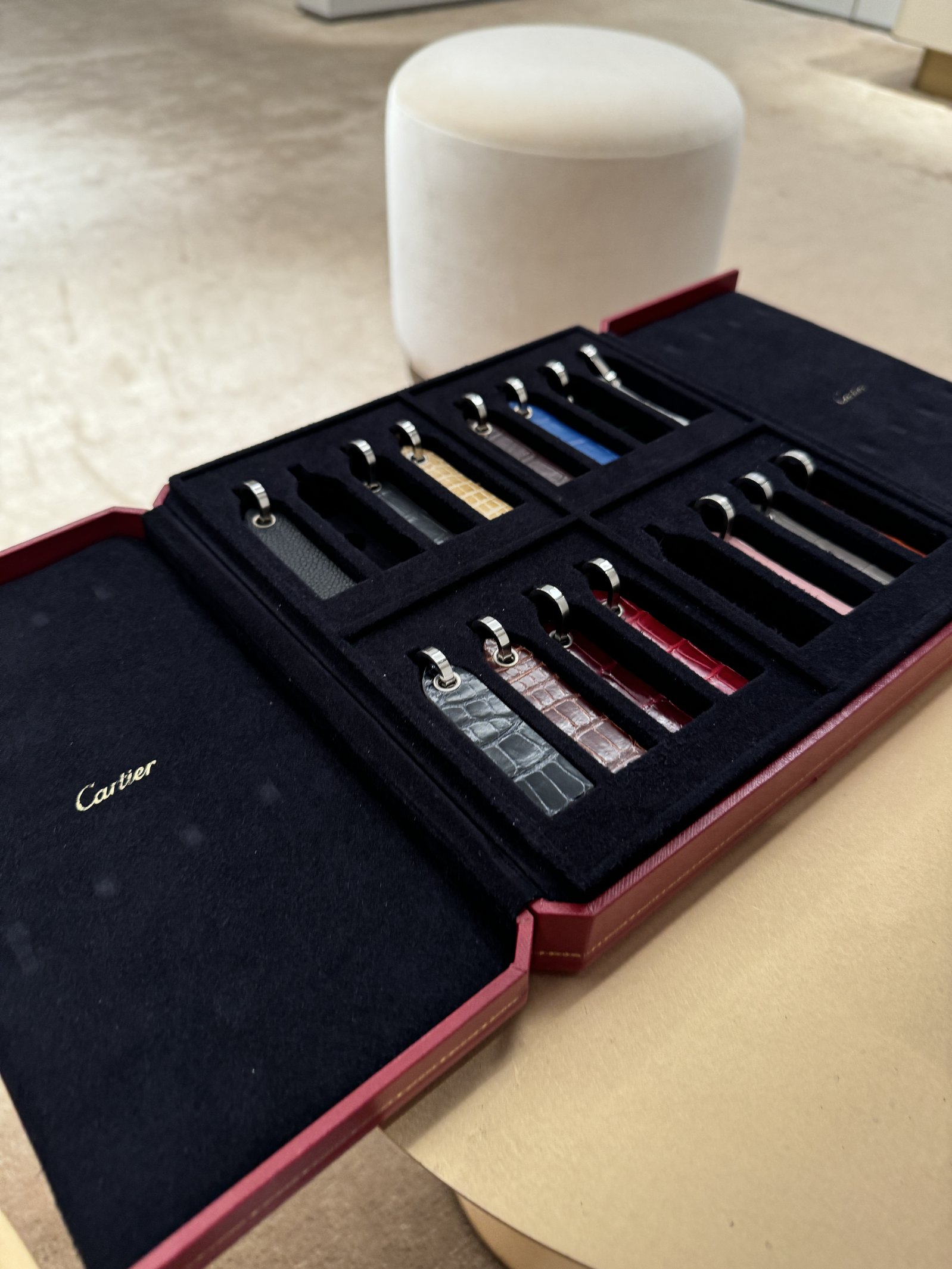カルティエの素晴らしい点は、廃盤になったモデルでさえ、ベルト交換やメンテナンスのサポートを受けられるところです。動物保護の観点から、当時と同じエキゾチックレザーであるクロコダイルのベルトは用意されていませんが、代替品も豊富に揃っており、好みに合わせて選べるのも嬉しいです。
