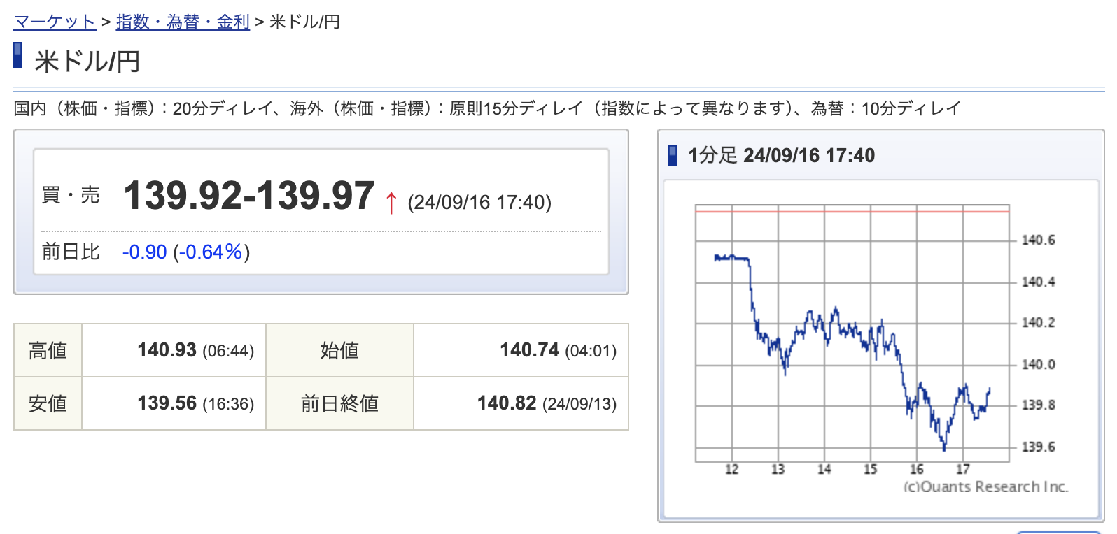 2024年9月16日、外国為替市場で円が対ドルで1年2カ月ぶりに139円台を突破しました。