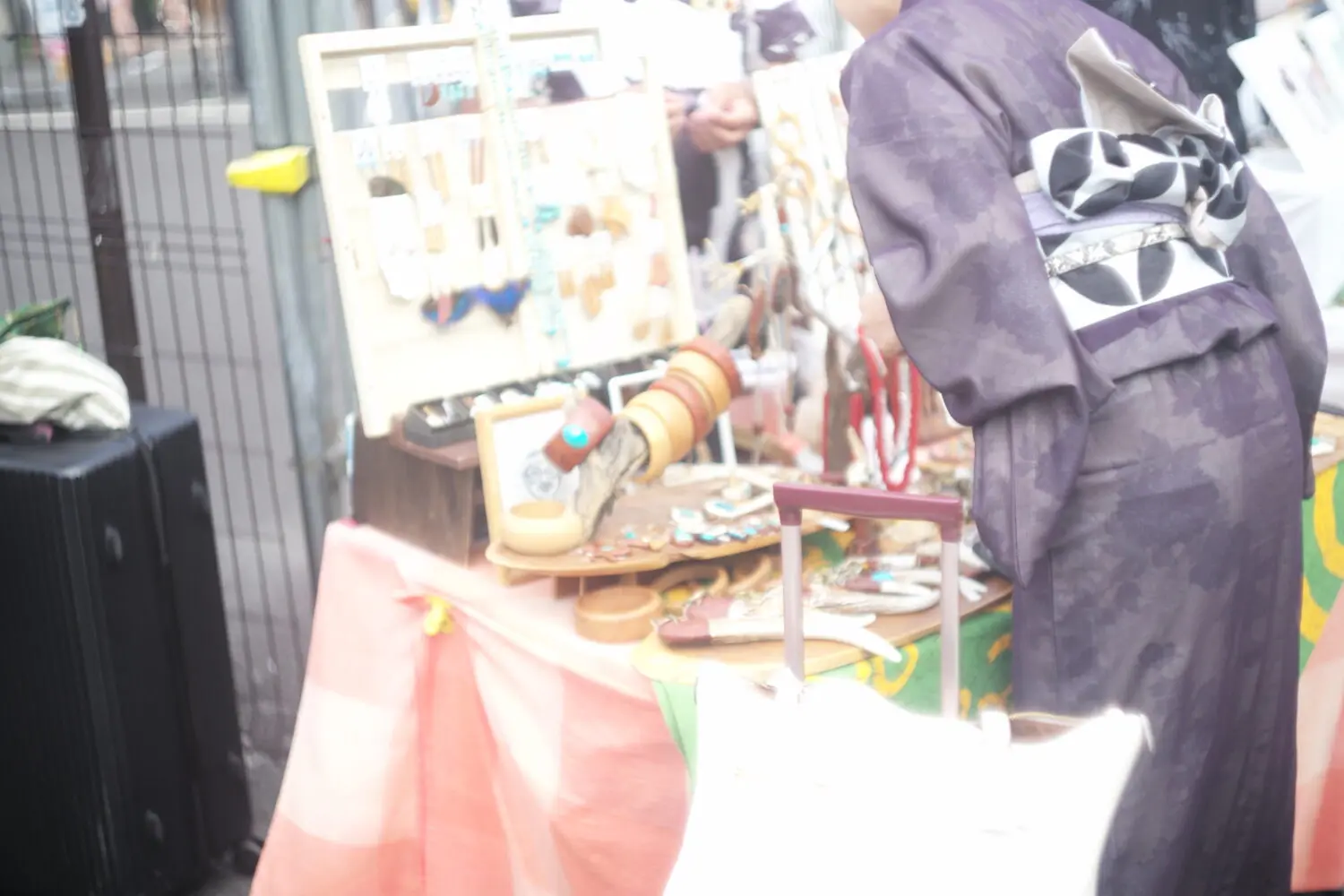 駅前の広場には、手作りのアクセサリーを販売する個人の方々が出店しています。