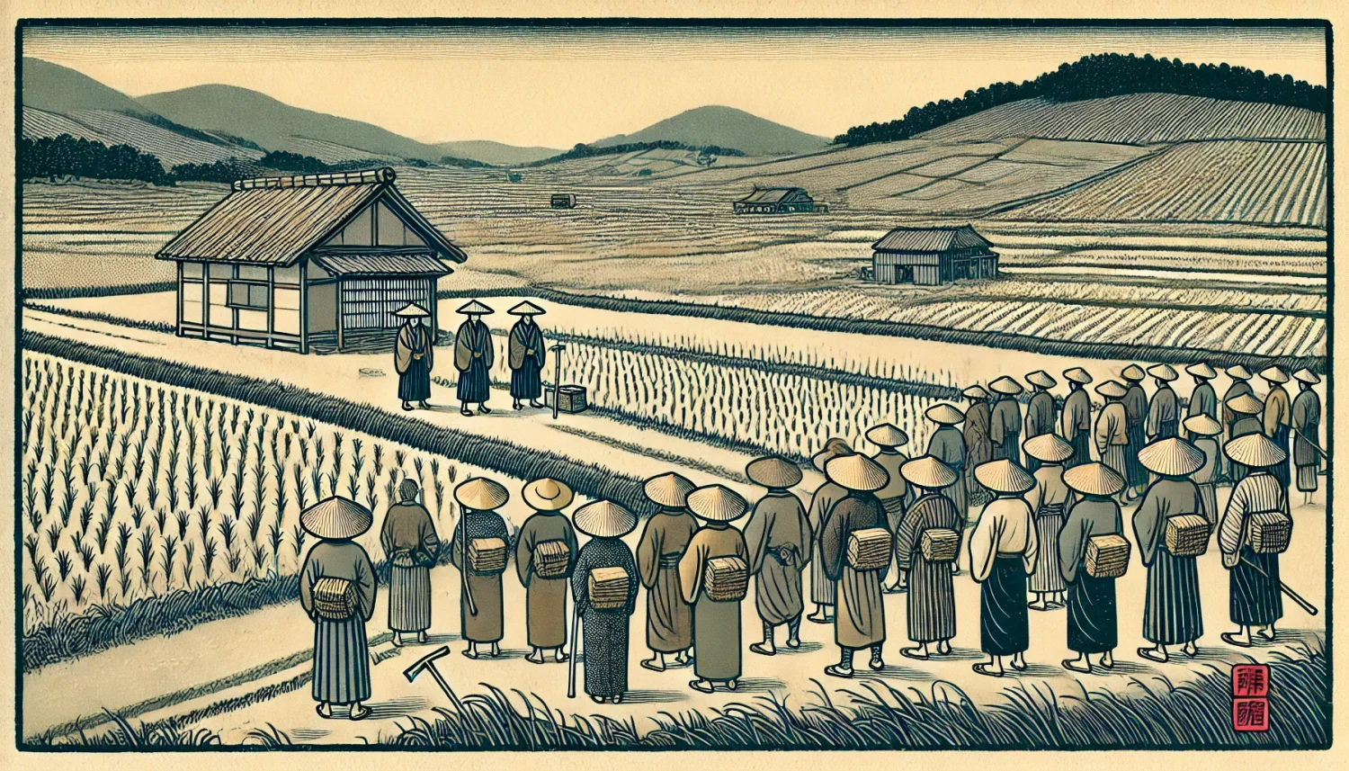 江戸時代の「四公六民」は、農民が収穫物の約40%を年貢として領主や幕府に納めるという制度です。残りの60%は農民が自分たちで使うことができました。しかし、この40%という数値は、収穫物に対して固定された割合でした。現代の税制のように所得に応じた累進課税ではなく、また、年貢がどのように使われていたかの透明性も限られていました。