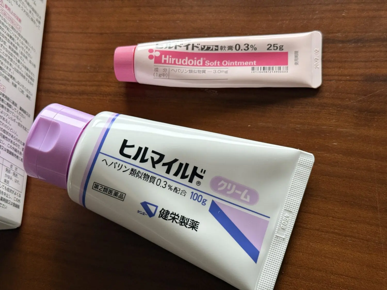 「ヒルドイド」と「ヒルマイルド」は、どちらもヘパリン類似物質を有効成分として含み、保湿効果や血行促進、抗炎症作用を持つ製品です。両者とも0.3%のヘパリン類似物質が含まれており、成分自体は同じですが、以下の点で違いがあります。