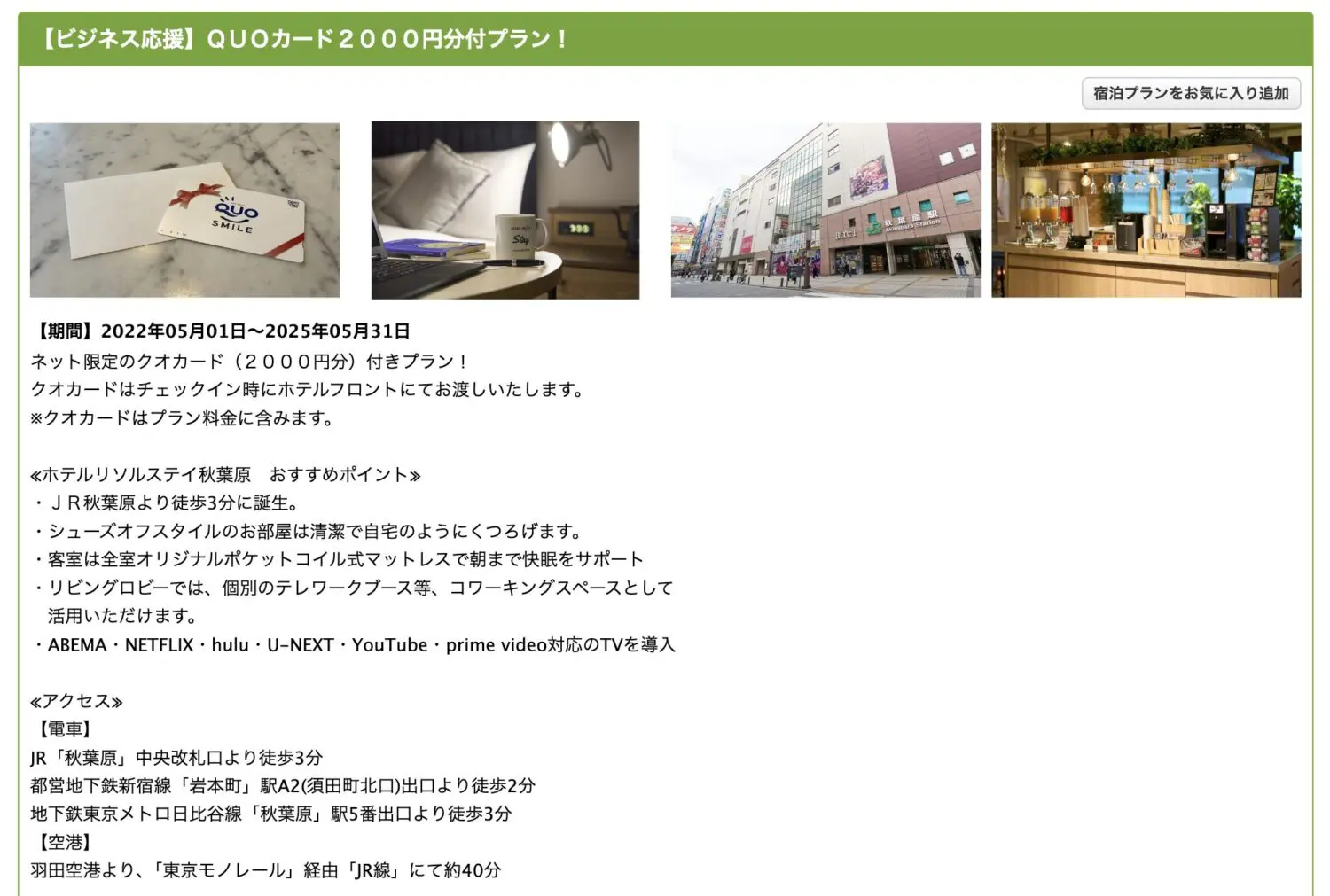 他にも、楽天トラベルなどでビジネスホテルを予約するときに、クオカードや図書券などがもらえるようなサービスも存在しますが、 これもまた日本のサラリーマンの闇ですね。