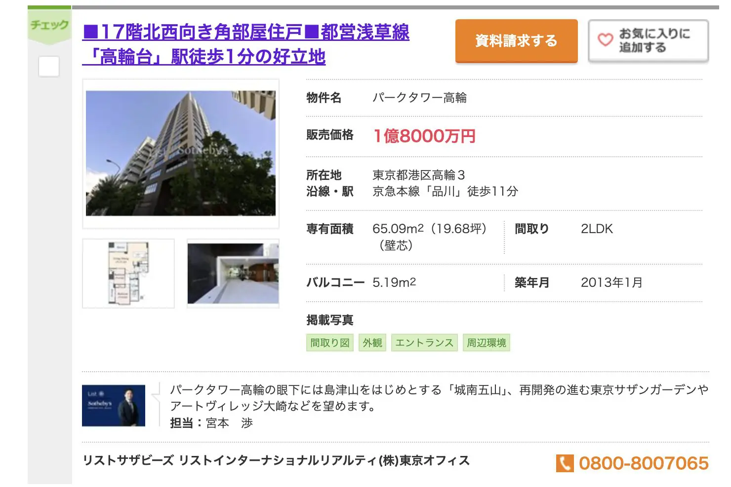 出典元:https://suumo.jp/ms/chuko/tokyo/sc_minato/nc_75888782/ 築10年以上、約65平米で1.8億円の価格も続出