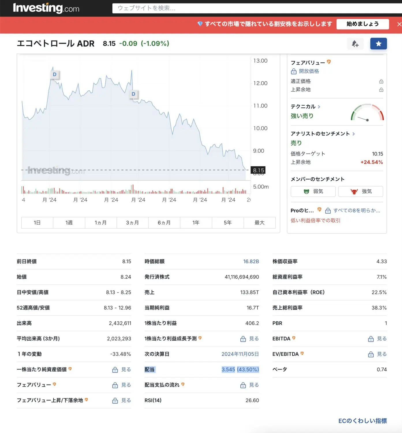 エコペトロールは、現在配当利回りが年利40%と驚異的な数字を示していますが、それにも関わらず、不人気な株の一つとなっています。高配当であるにもかかわらず、なぜ投資家に避けられているのでしょうか?この記事では、エコペトロールADRの背景やリスク、財政状況について分析し、この状況を詳しく見ていきます。