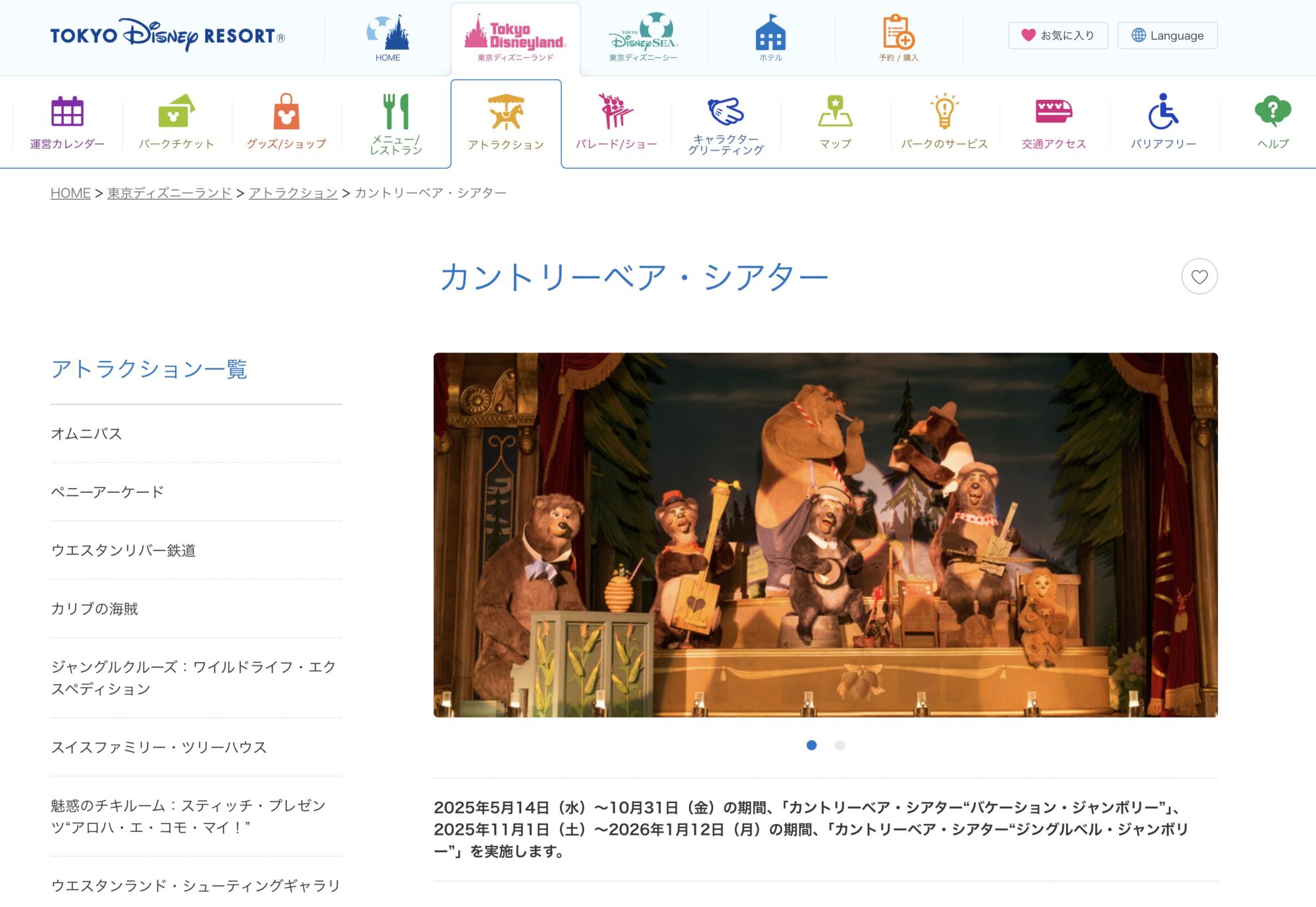 18頭のクマたちがユーモアたっぷりにカントリー&ウエスタンを大熱演するショーなのですが、歌の完成度や演出の雰囲気が素晴らしく、まるでアメリカ旅行に来ているような感覚を日本語で味わえる特別な空間でした。