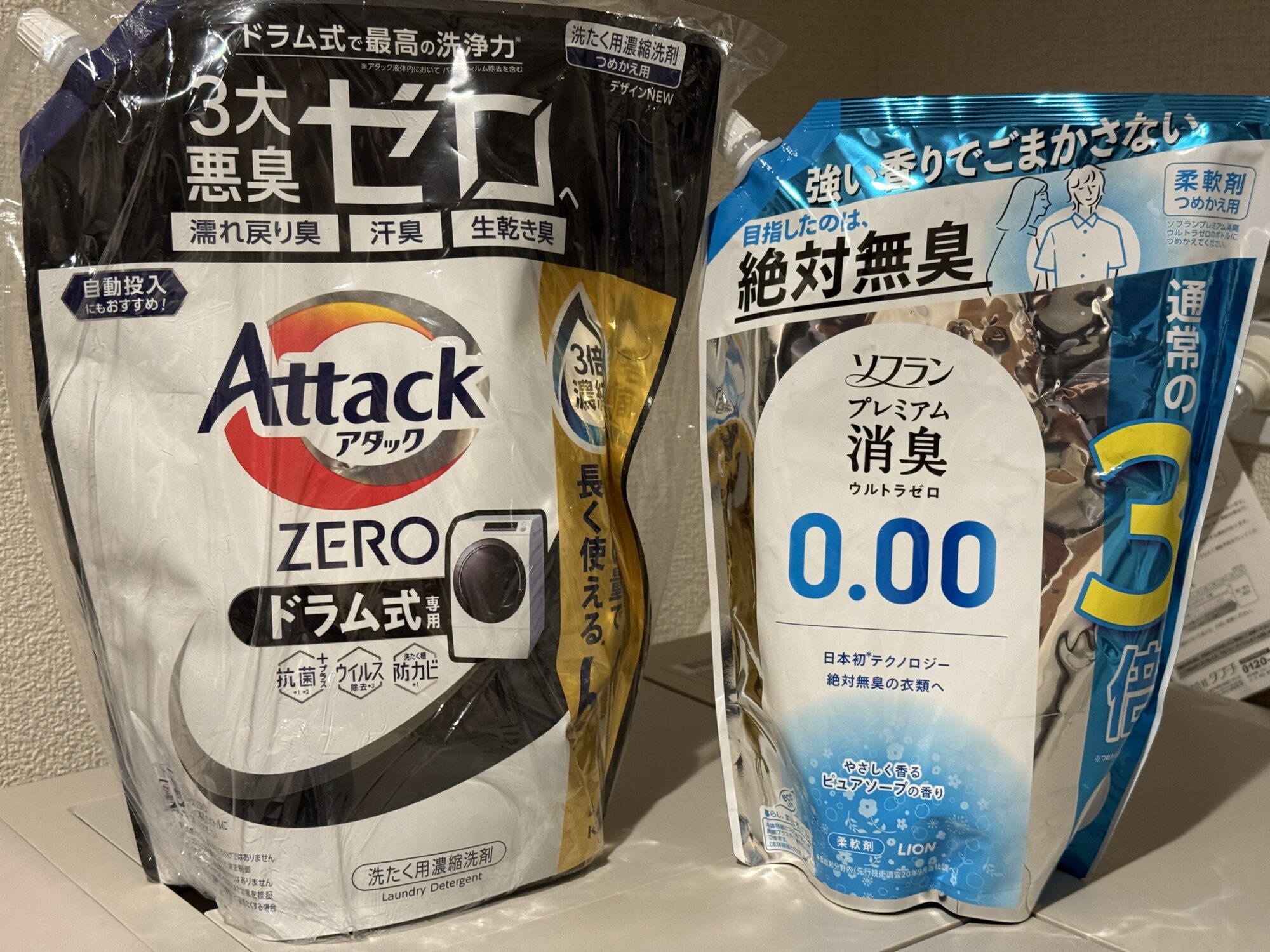 この2つを使って普通に洗濯するだけでも、ある程度のニオイは軽減されます。