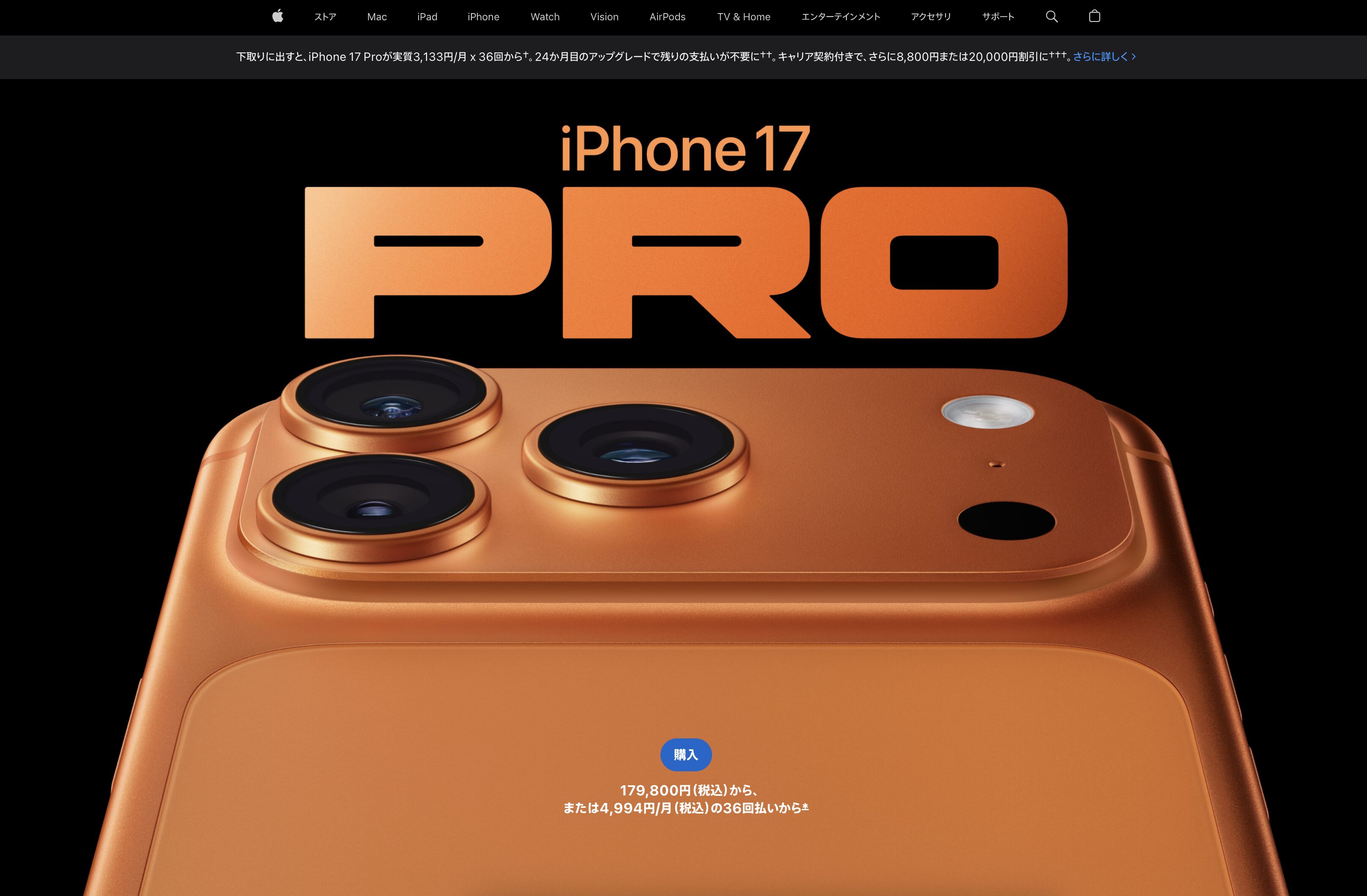 ただし、公式サイトの訴求を見ても、主にカメラ性能を中心にアピールしており、バッテリー駆動時間やApple Intelligence、衛星通信、eSIM対応といった部分は確かに進化しているものの、「革新的」と呼べるほどの衝撃はありません。Appleがかつて得意とした飛躍的なイノベーションではなく、堅実なアップグレードに収まっている印象です。