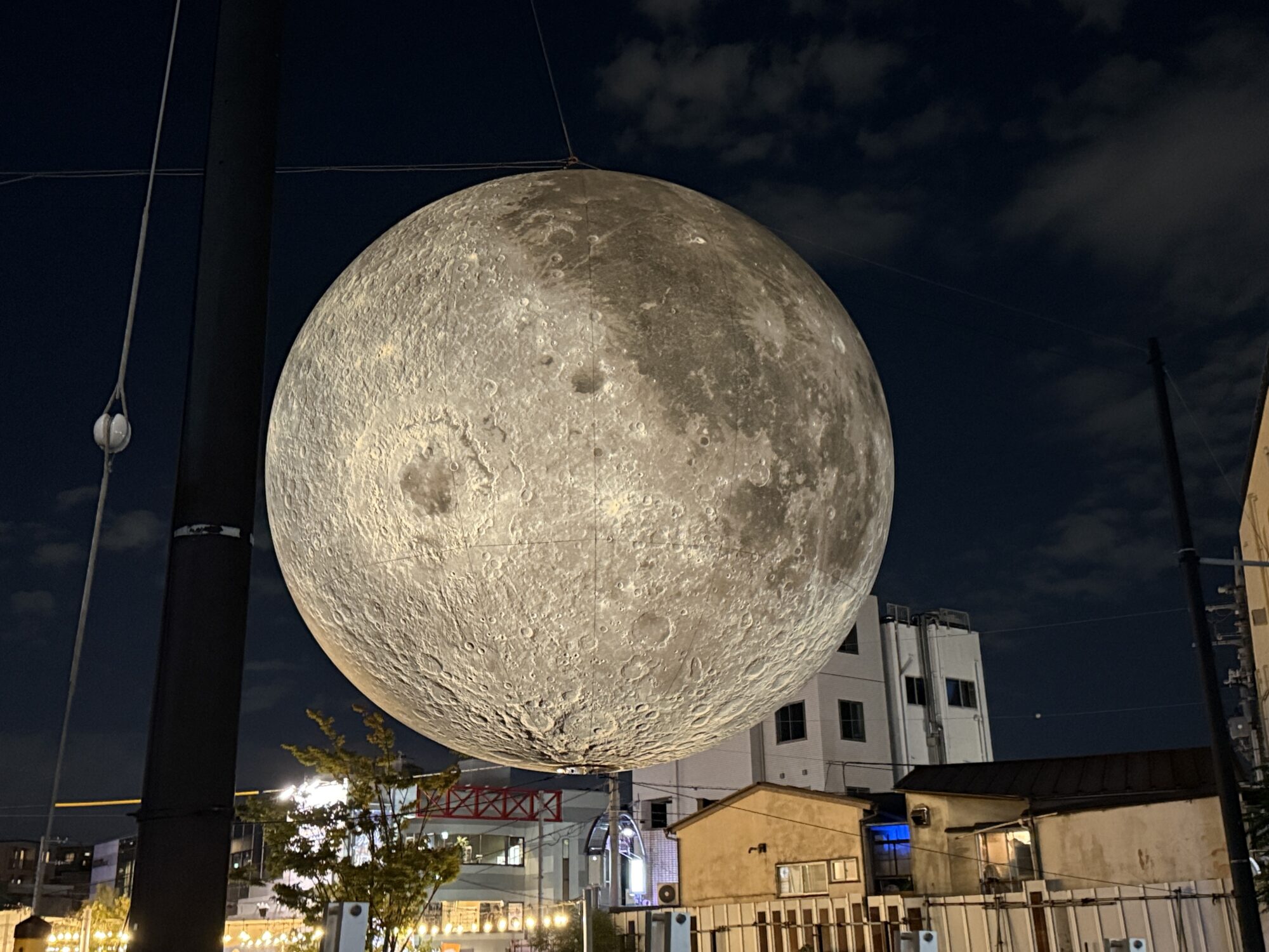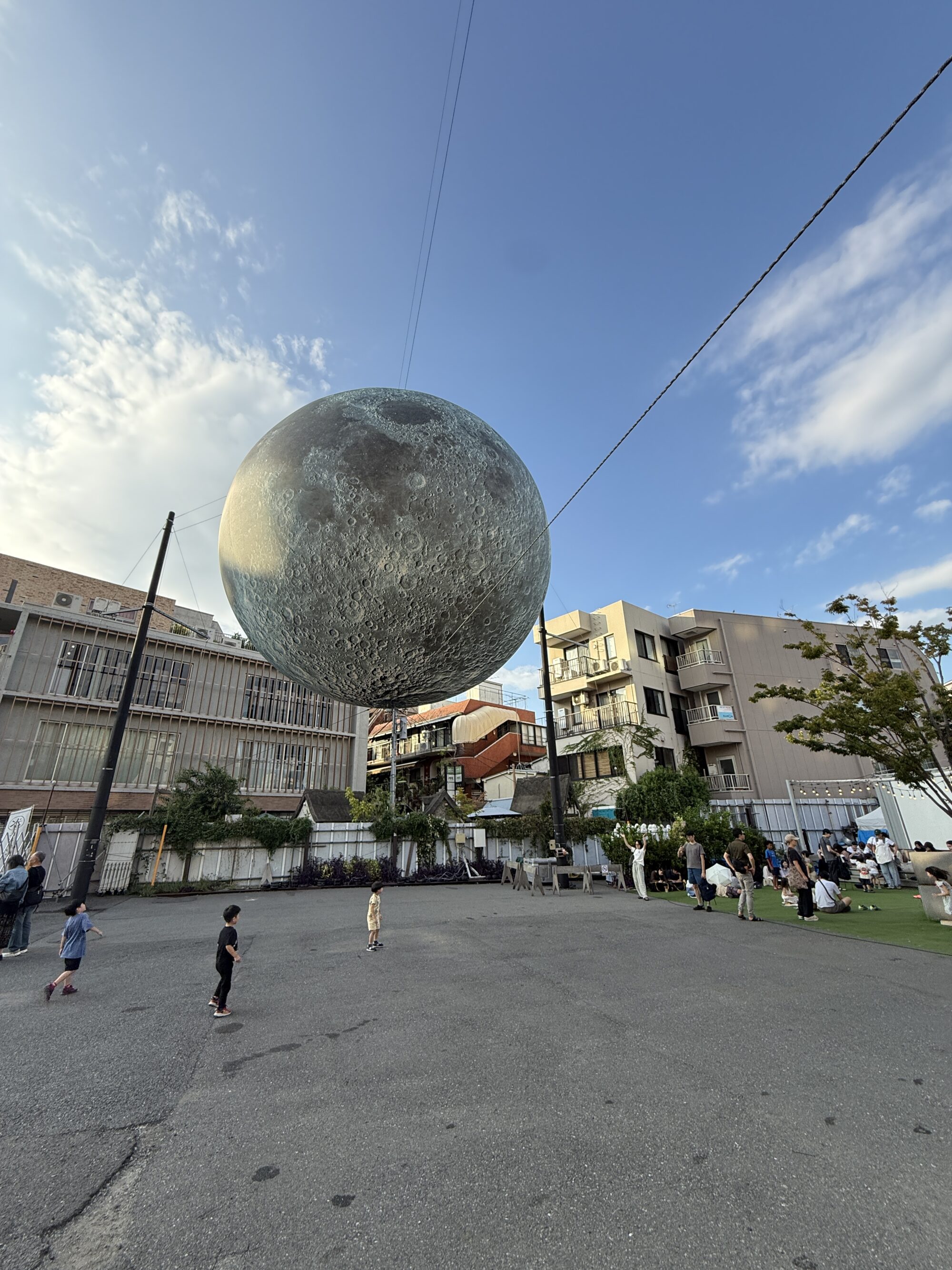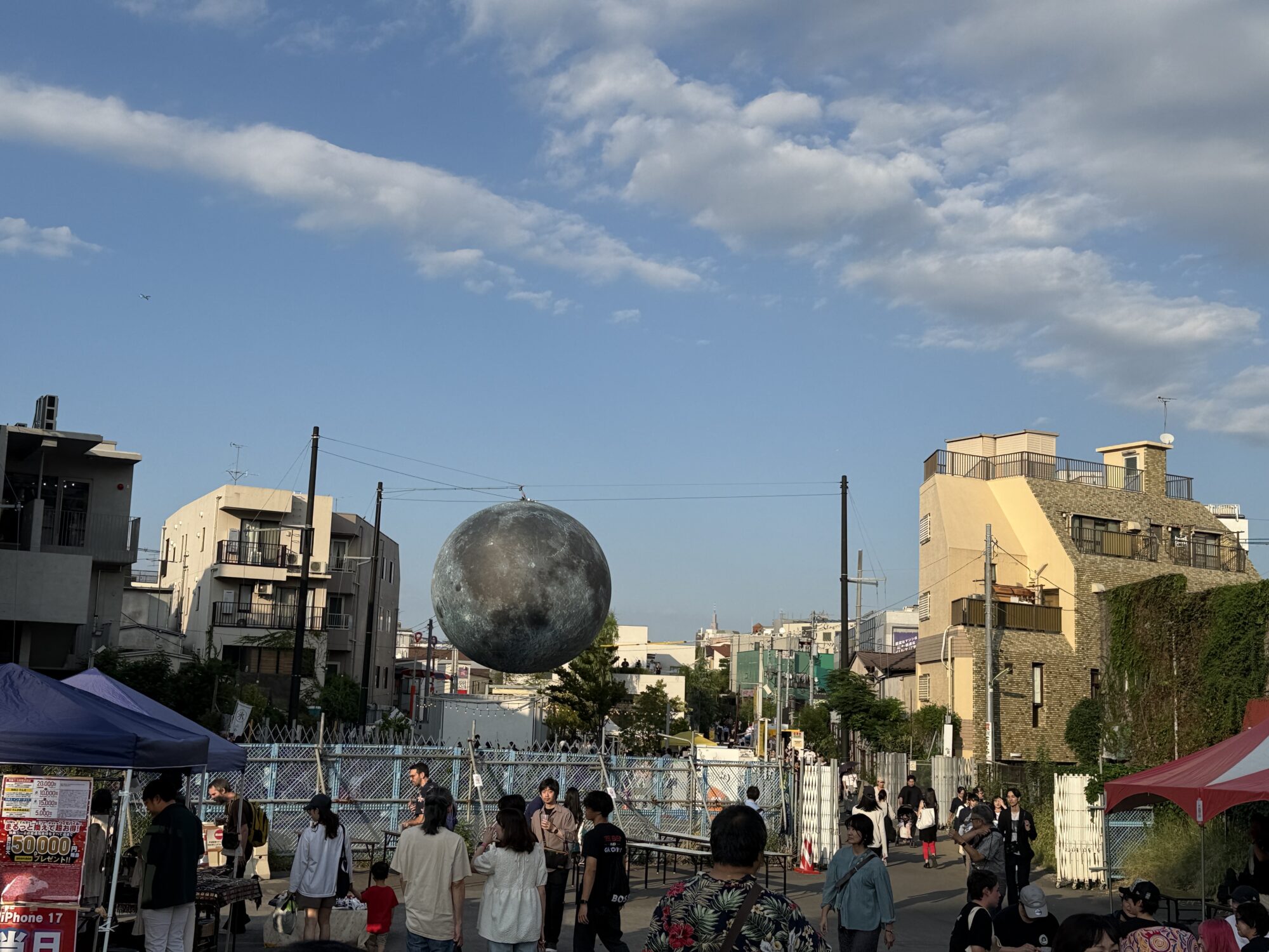 直径7mの巨大な月のインスタレーション。今年も下北線路街 空き地に登場し、夜はとくに幻想的で写真映え抜群です。