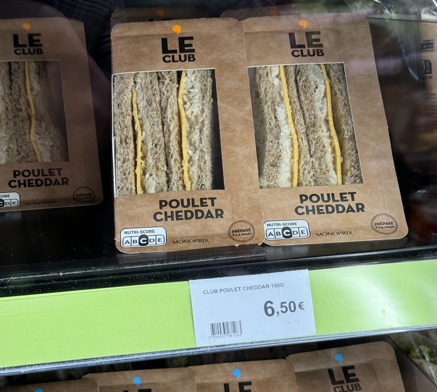 日本のコンビニなら150円ほどですが、パリの駅の自動販売機では3.10ユーロ、つまり約600円します。さらに空港で買ったサンドイッチは、薄いチーズが挟まっただけの日本なら250円程度のものが6.5ユーロ、約1300円でした。