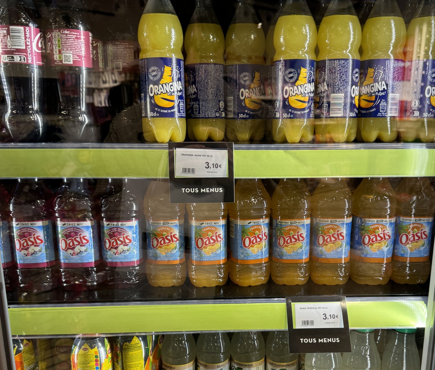 今の話は主にイタリア、ローマやナポリの2023年頃の価格ですが、フランス、特にパリはその上を行く非情さがあります。観光地周辺の物価は信じられないほど高く、例えば写真にあるような500mlのオランジーナ。