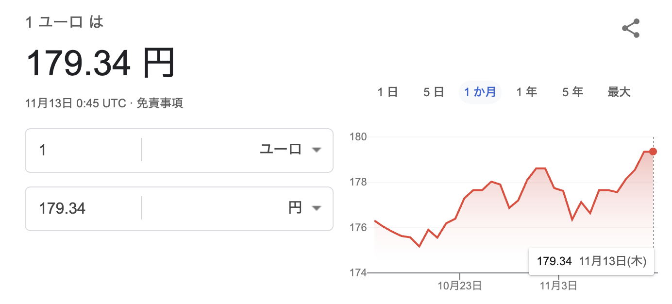 そして2025年11月現在、ユーロはついに180円に到達しました。