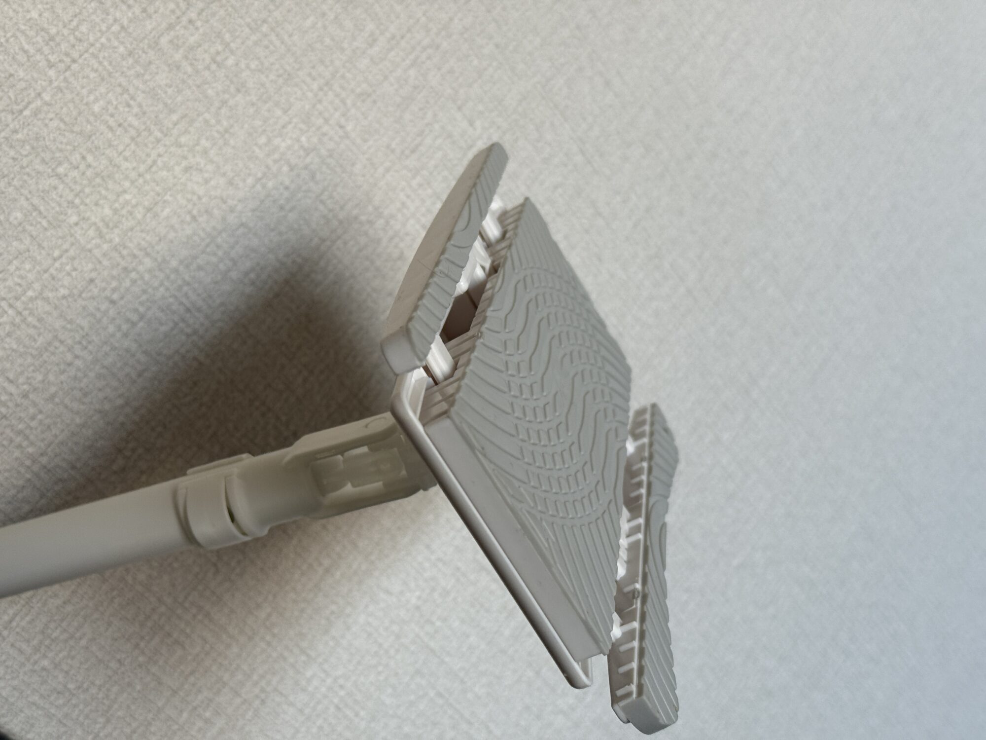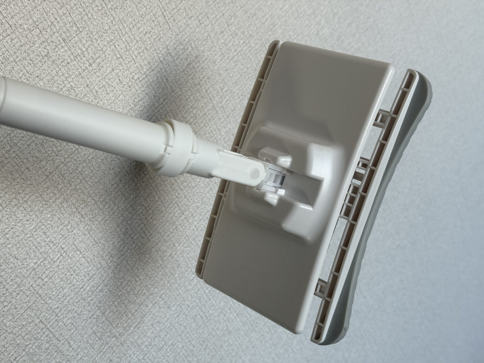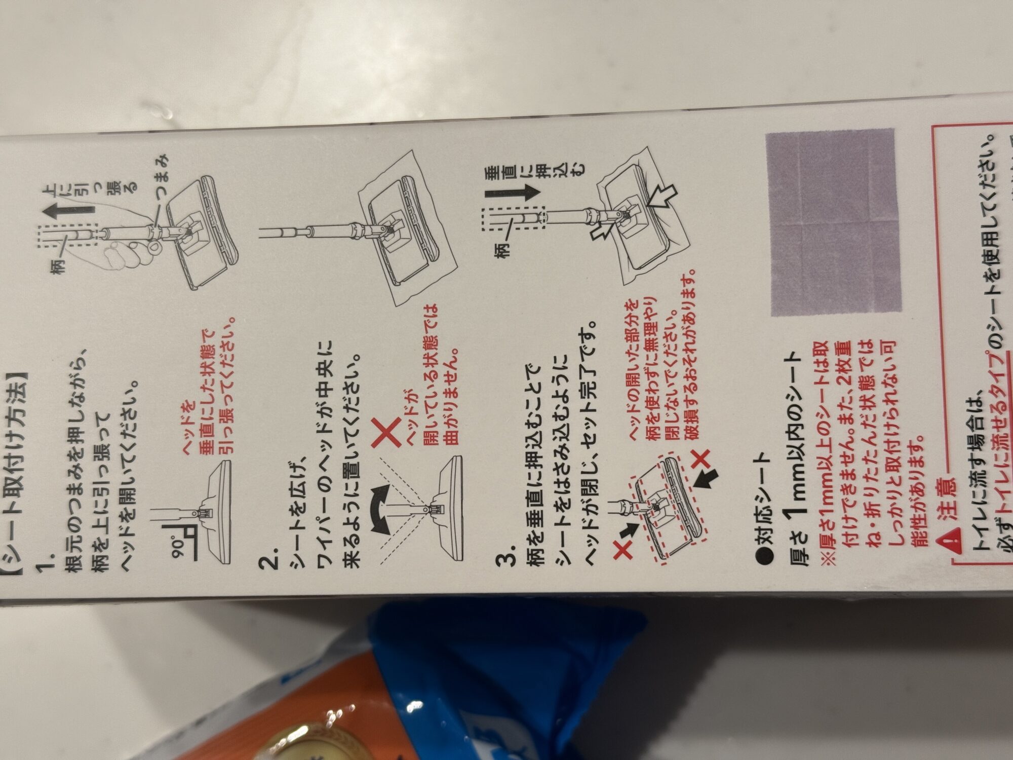 サイズはクイックルワイパーより一回り小ぶりで、トイレの狭い床に最適化されています。もともとこの手のワイパーは、シートを差し込んで固定する古い構造のイメージが強く、面倒だし衛生的にも微妙だと感じていました。しかし、この新型ワイパーはまったく違います。シートを上から押し付けるだけで装着完了。数秒で準備できる圧倒的手軽さに驚かされます。