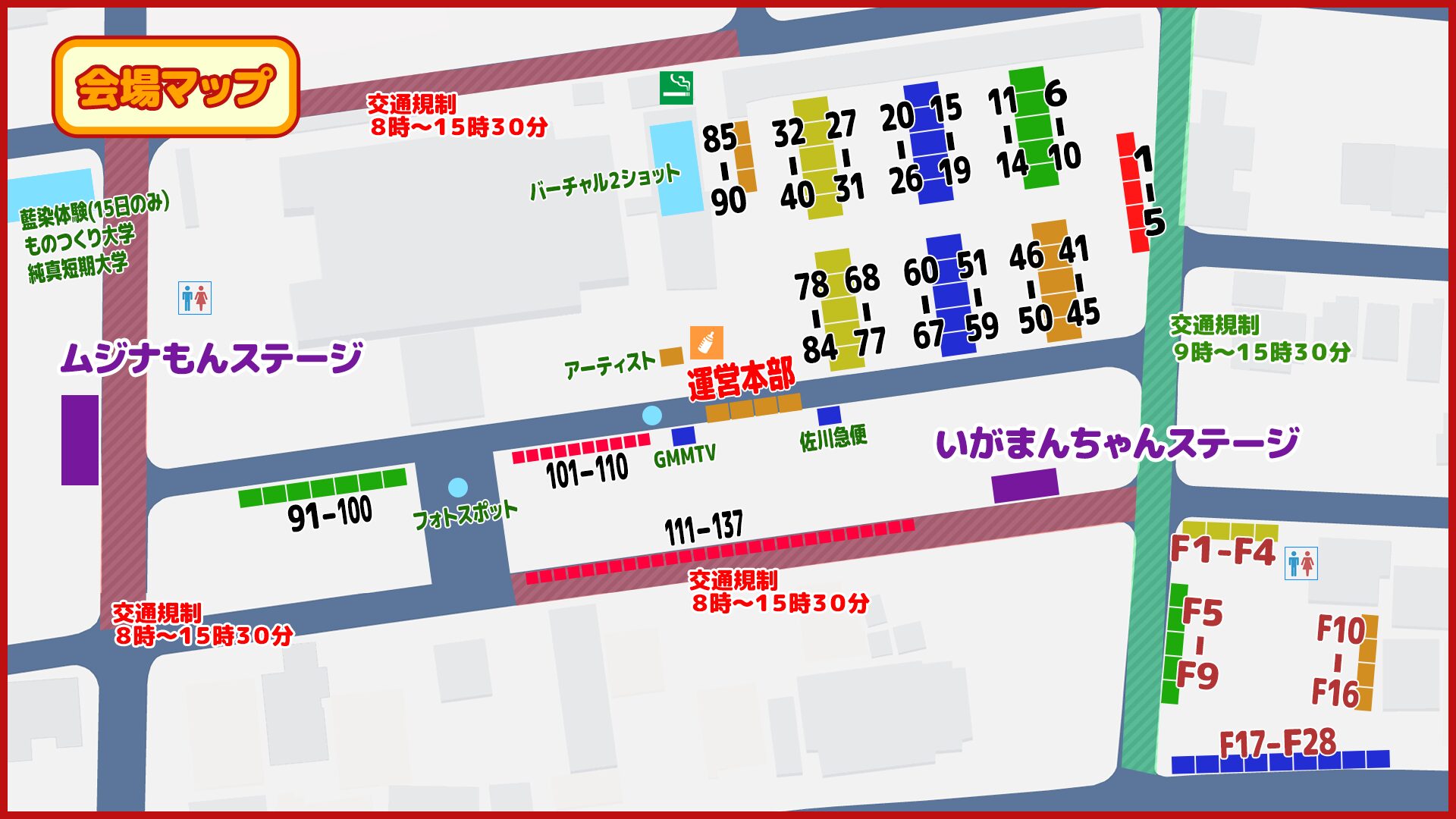 イベントの中心は「ムジナもんステージ」と「イガマンチャンステージ」の2つのメインステージです。この2カ所では、絶えずキャラクター紹介やダンス、トークショー、コラボ企画などが行われています。