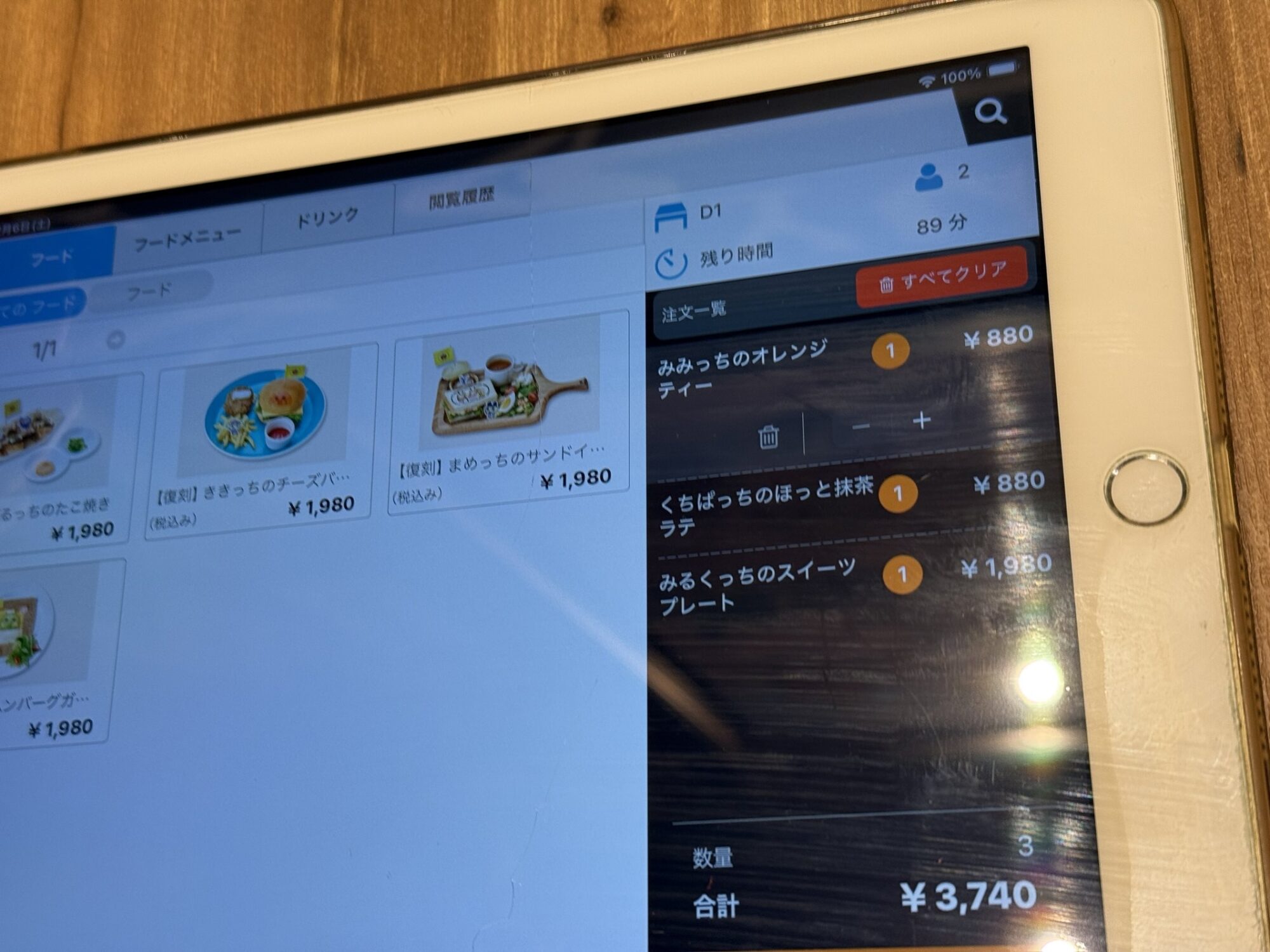 カフェは完全予約制で、当日はタブレットでメニューを選ぶスタイル。案内は予約時間ぴったりに始まるので、5分前くらいに到着するとちょうど良いと感じました。