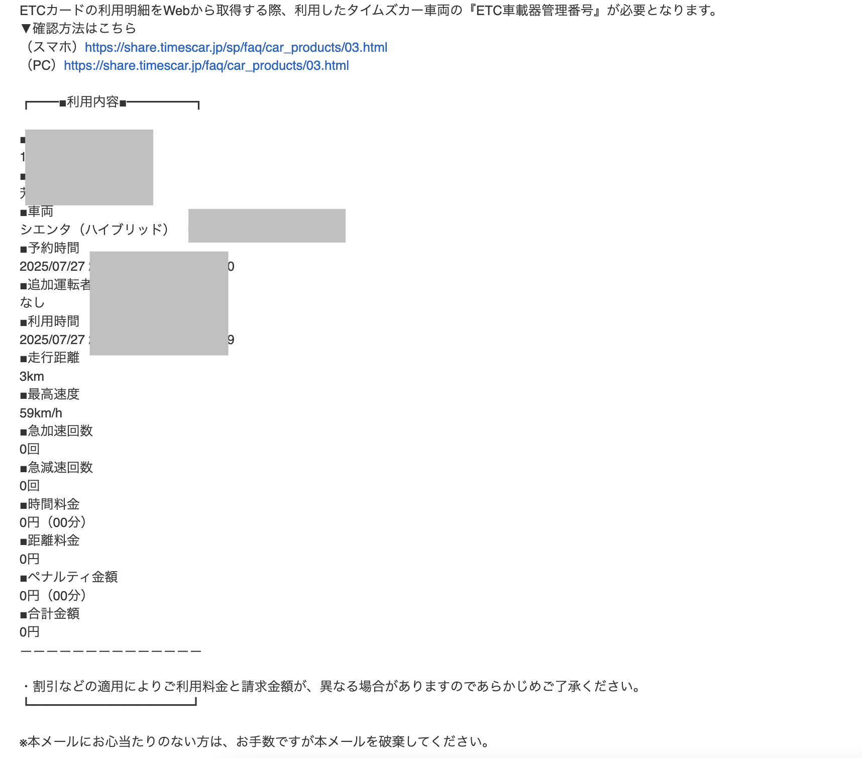 本日、タイムズ・カーシェアから一通のメールが届きました。