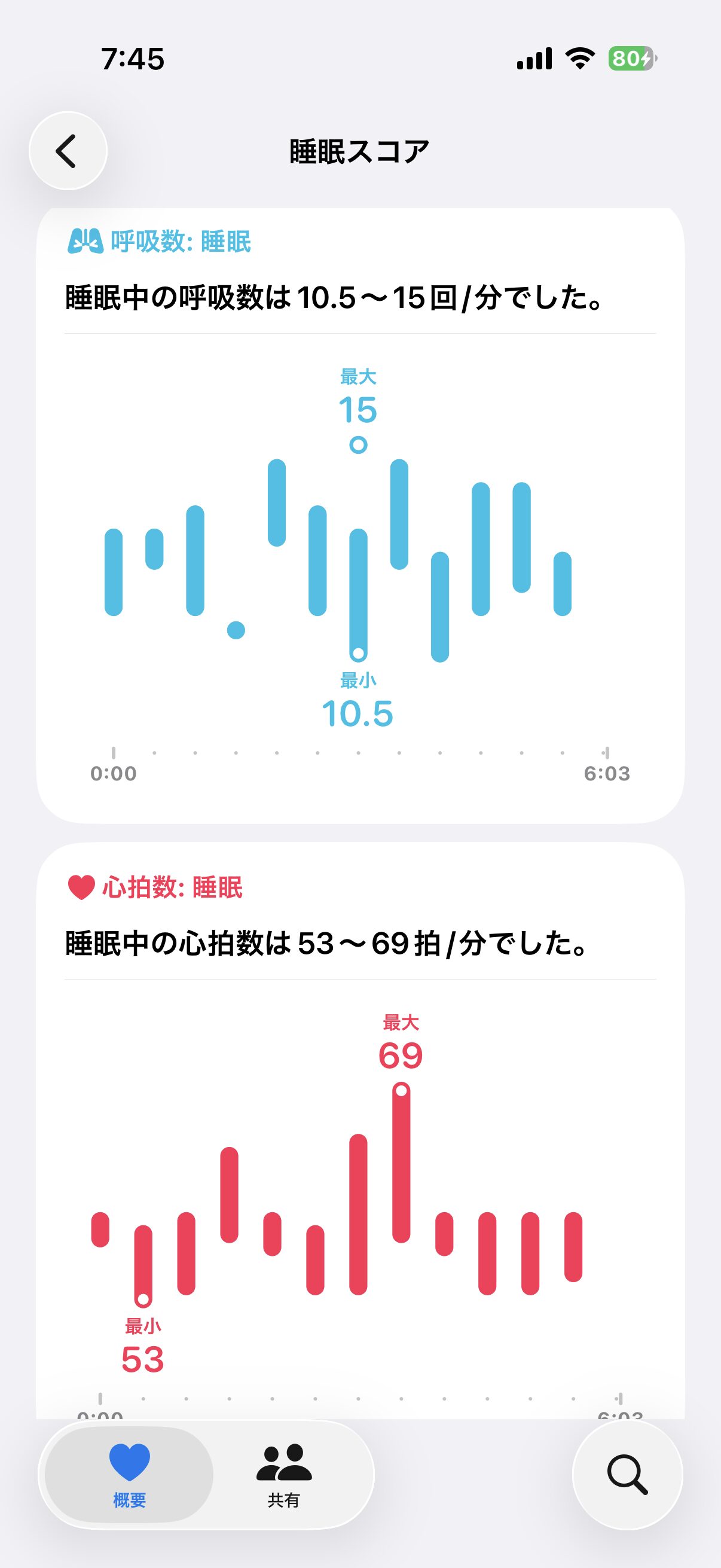 Apple Watchの睡眠スコアやバイタル計測は、不安を煽るためのものではなく、自分の体調や生活習慣を静かに映し出す鏡のような存在だと感じました。運動量が多かった日、ストレスが強かった日、あるいは睡眠時間が短かった日などと照らし合わせて見ることで、「自分にとって調子のいい眠りとは何か」を考えるきっかけになります。